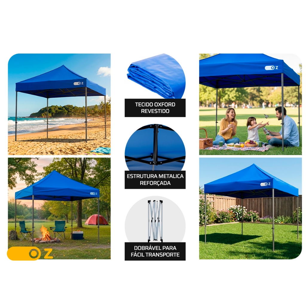 Tenda Gazebo Sanfonado Articulada Dobrável 2 Por 2 Metros Com Mala Transporte Td1200 Oz Cor Azul