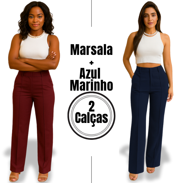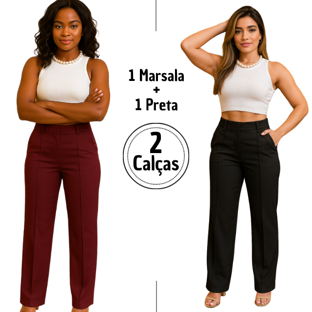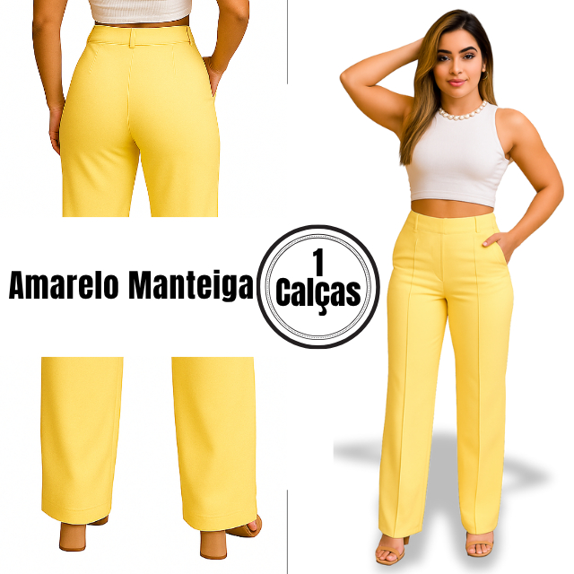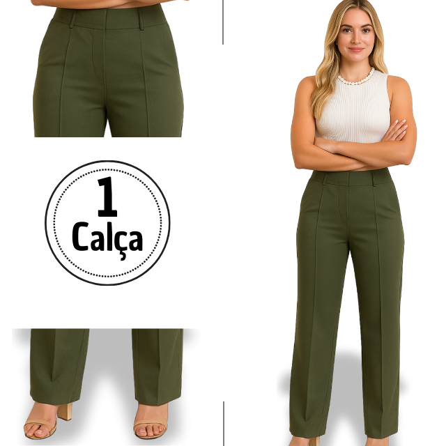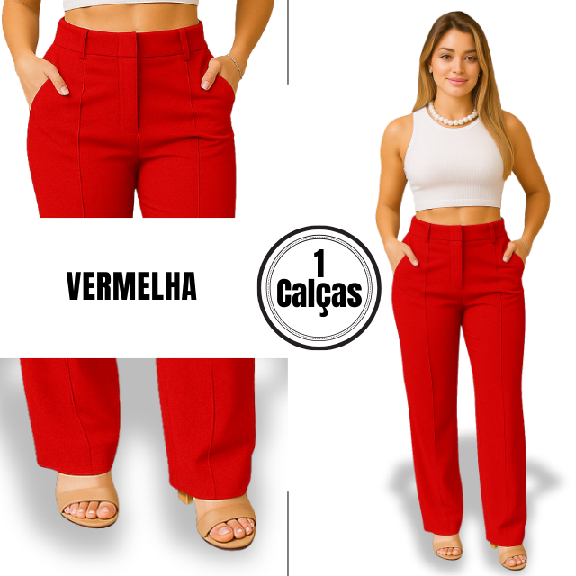 Calça Social Pantalona Alfaiataria Cintura Alta Feminina Elegante Social, com bolso Alfaiataria Premio