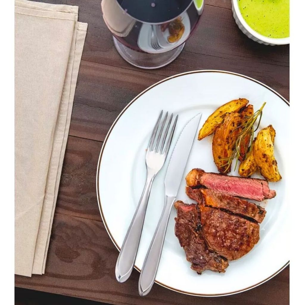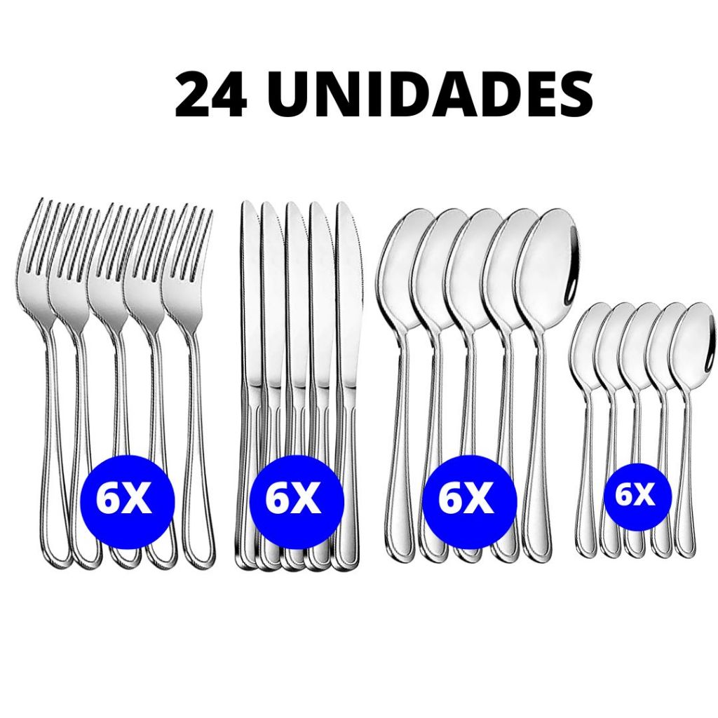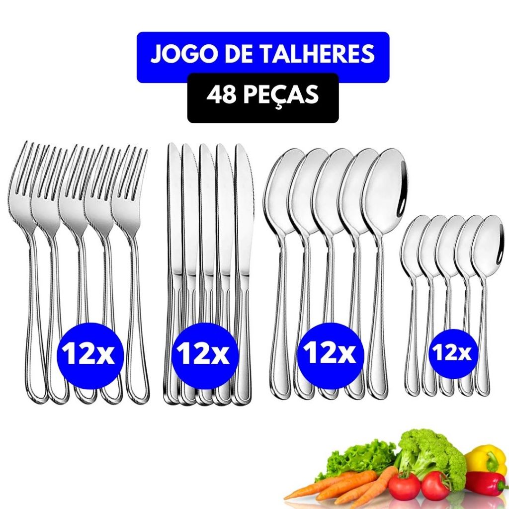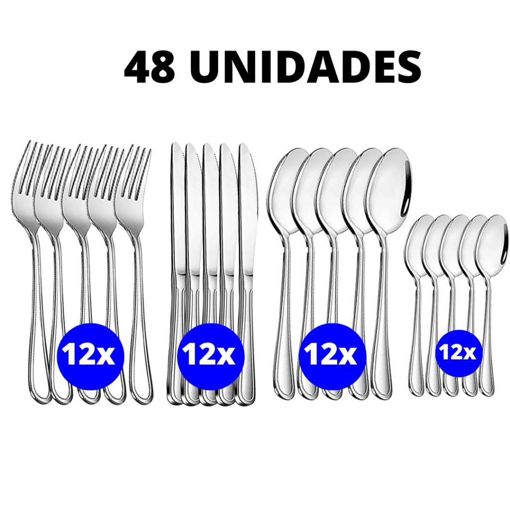 Kit 48 ou 24 Peças Talher em Aço Inox Garfos Colheres Facas Colheres Sobremesa Linha Premium