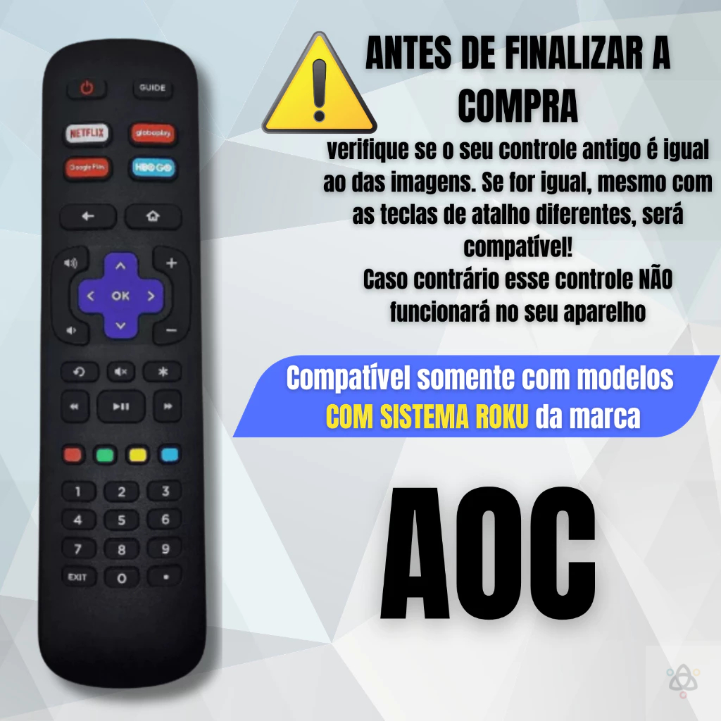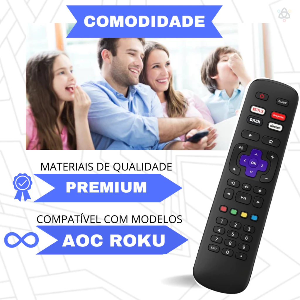 Controle Remoto Compatível com AOC ROKU TV Smart TV