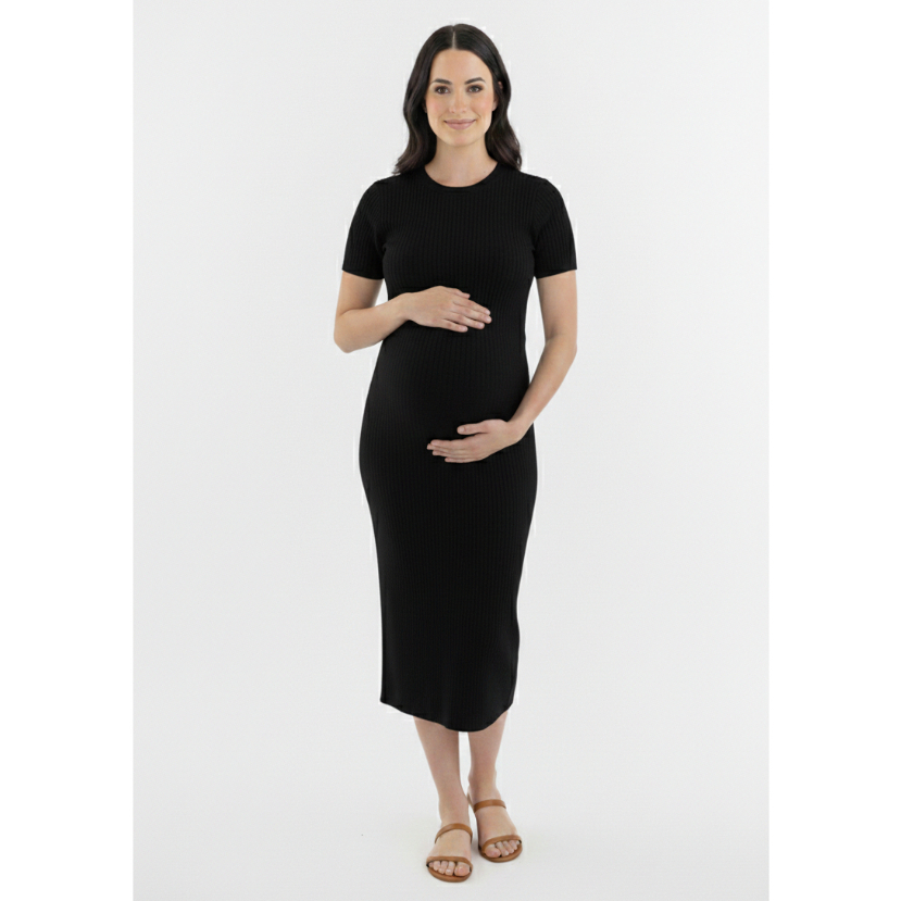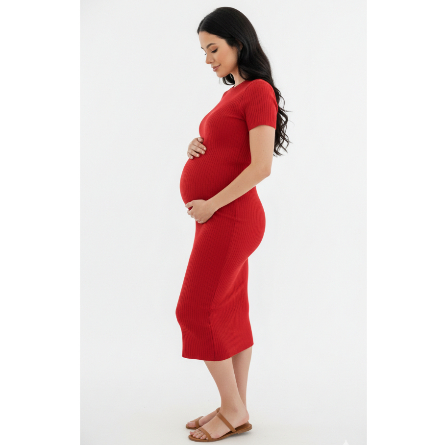 Vestido Midi Gestante Grávida Maternidade Confortável Canelado Manga Manguinha Moderno Social