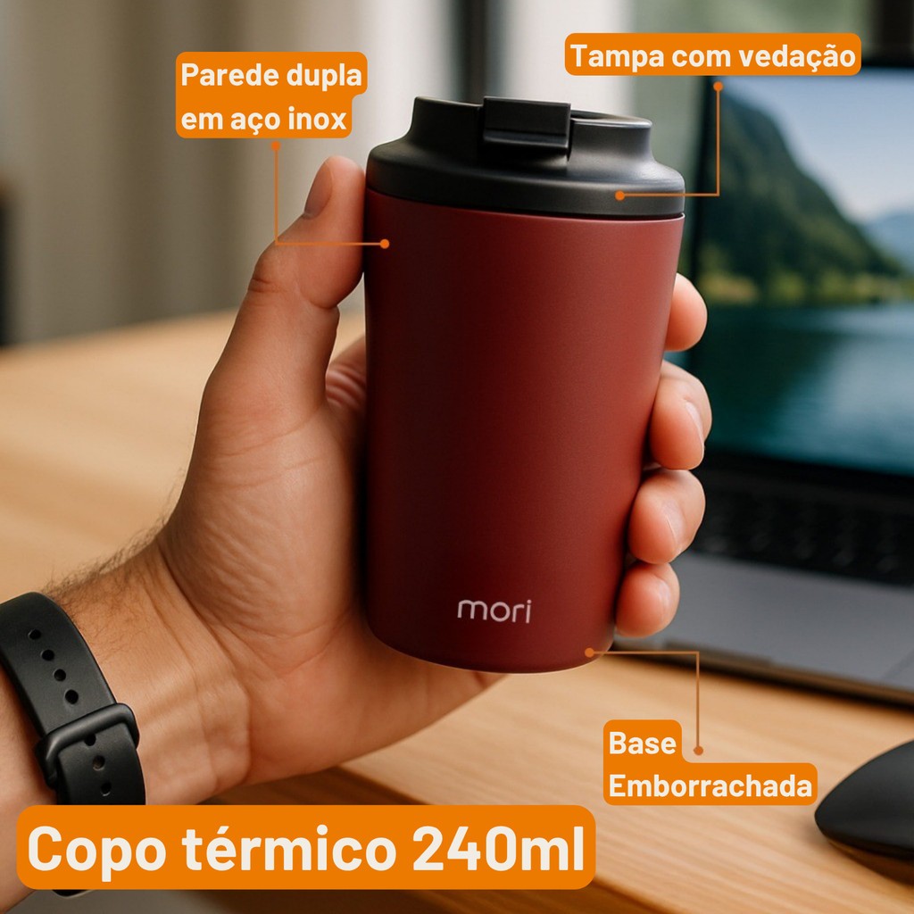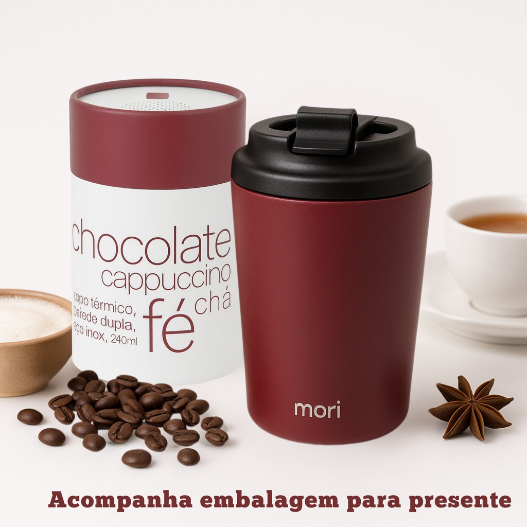 Copo Térmico Inox 240ml com Tampa Vedação Parede Dupla para Café Chá Presente Viagem