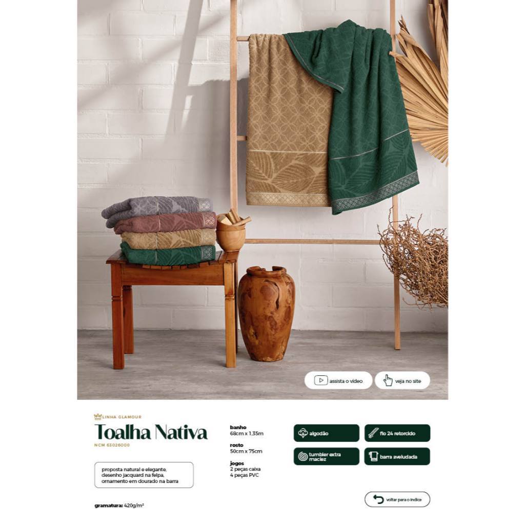 Jogo 2 Toalhas de Banho + 2 Toalhas de Rosto Grossa Macia Textura em Jacquard 100% Algodão 420g/m²