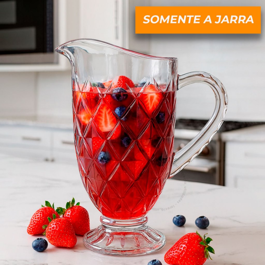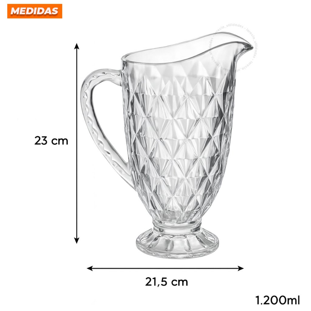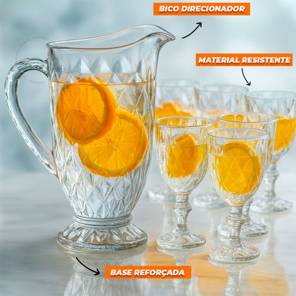 Jarra 1200ml Diamond ou 06 Taças 325ml Diamond Suco Agua Transparente Luxo Possui Variações