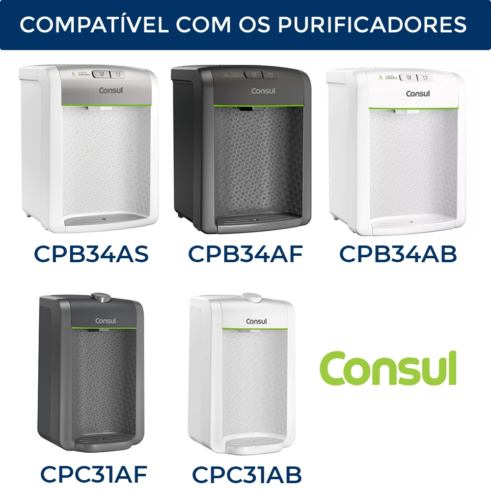 Kit 2 Refil Filtro Consul Compatível Purificador CPC31AB, CPC31AF, CPB34AB, CPB34AS e CPB34AF