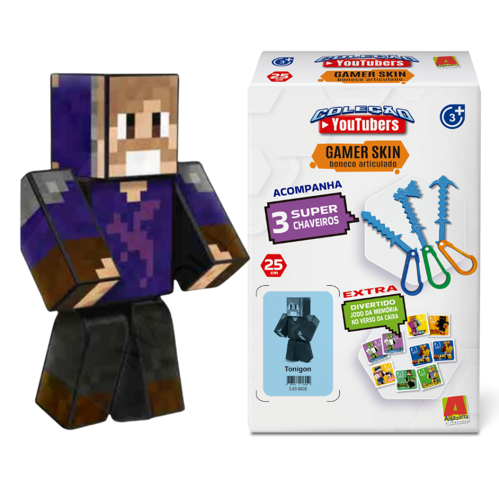Boneco Tonigon 25 cm Gamer Skin Com 3 Chaveiros Ferramenta Original