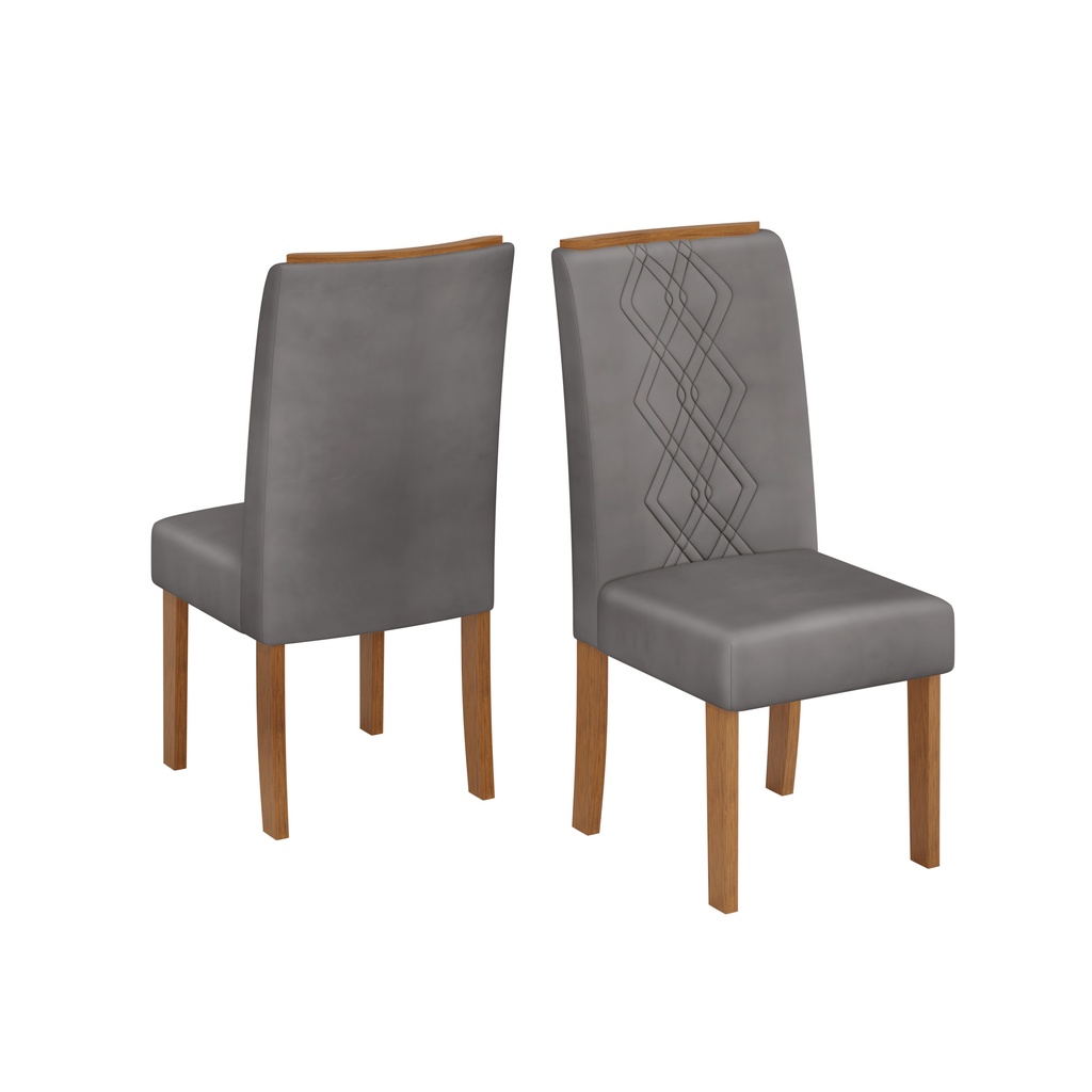 Conjunto Sala de Jantar 4 Cadeiras Tampo de Vidro DJ Moveis Kiara Freijó Ayla Lunar