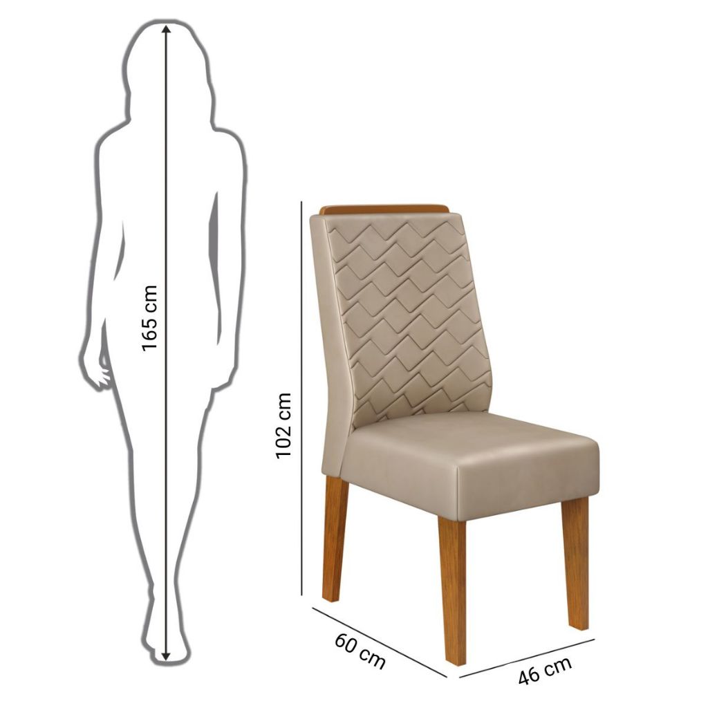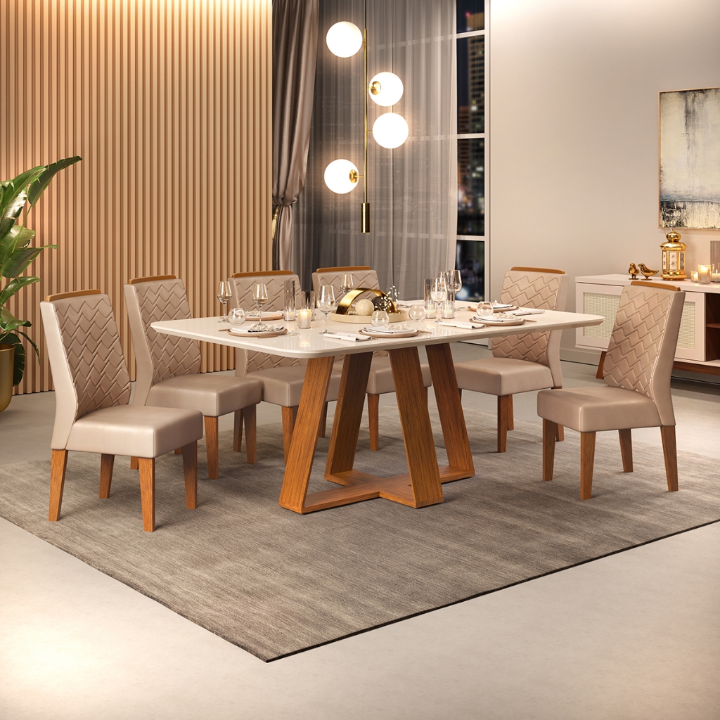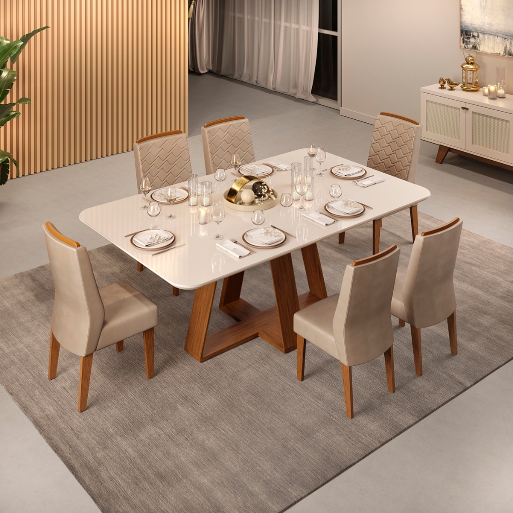 Conjunto de Sala de Jantar 6 Cadeiras Tampo Curvo Dj Móveis Kiara Freijó Lidia Kraft