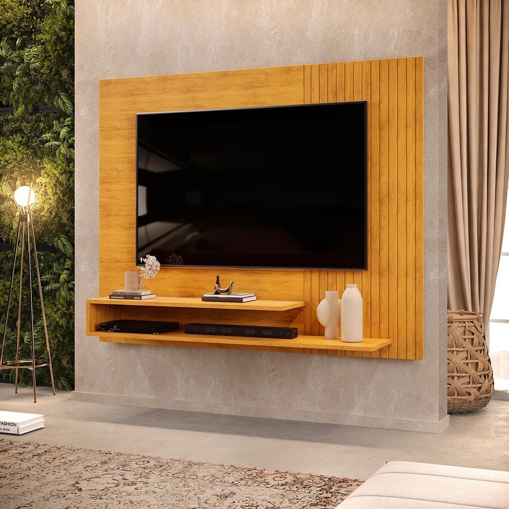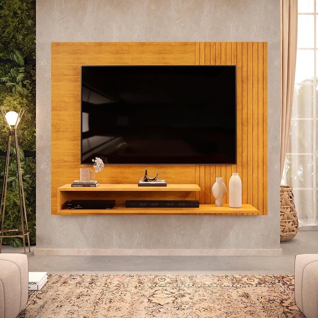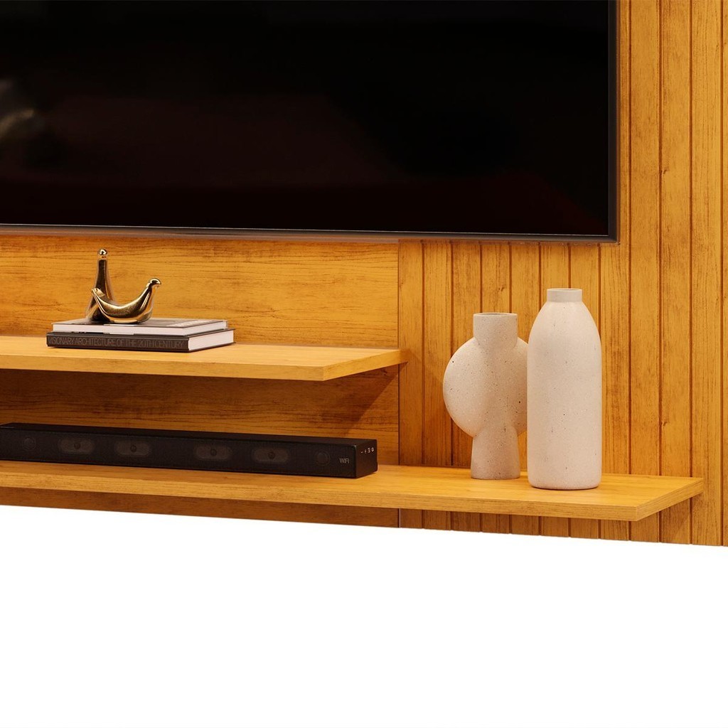 Painel para TV até 50 Polegadas Ripado com Nichos DJ Móveis Nando Cedro