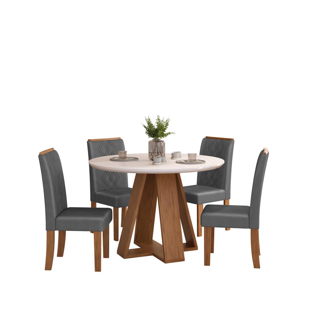 Conjunto Sala de Jantar 4 Cadeiras Tampo de Vidro DJ Moveis Kiara Freijó Ayla Lunar