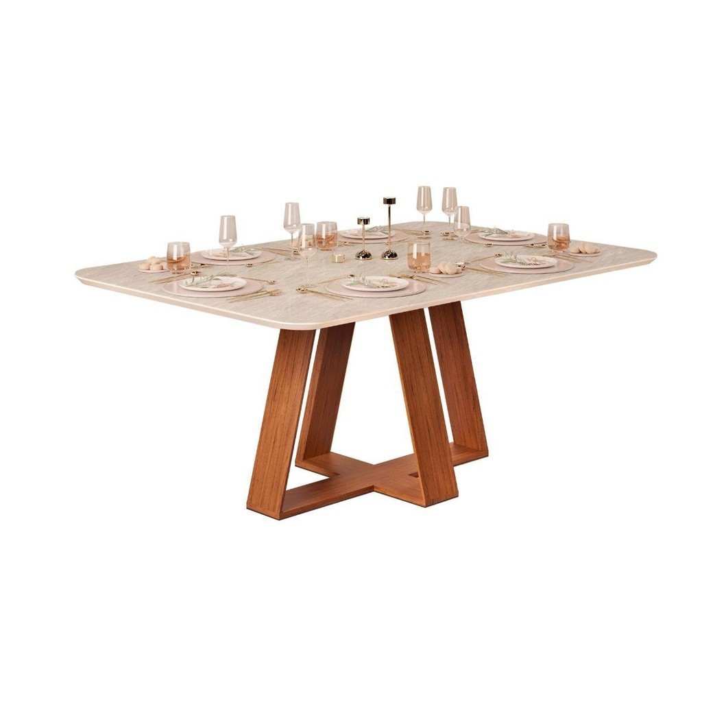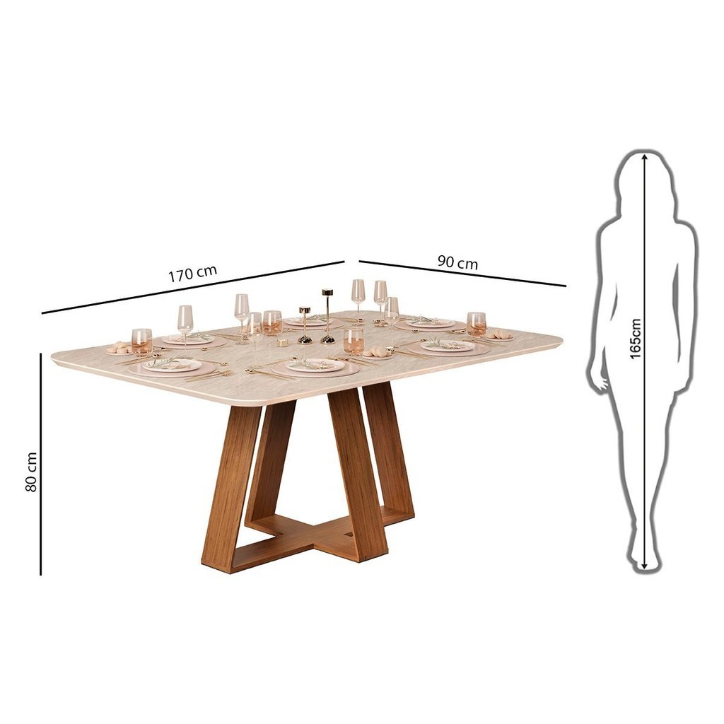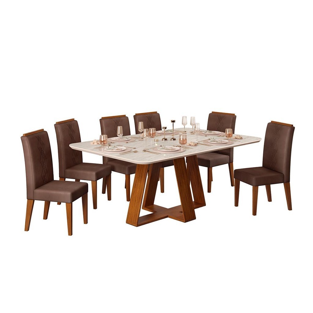 Conjunto Sala Jantar 6 Cadeiras Sem Vidro 170x90 DJ Móveis Kiara Freijó Quartzo Yasmin Veludo Moca
