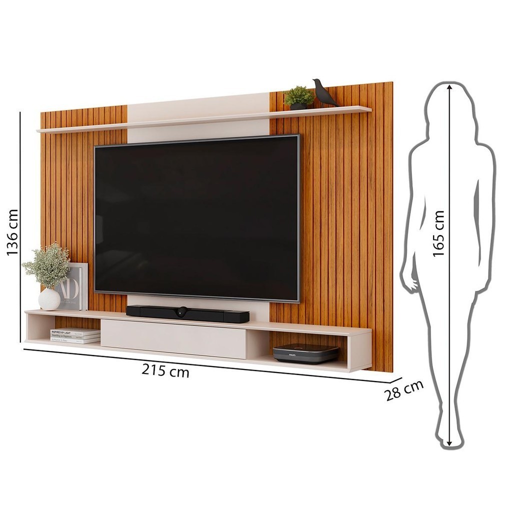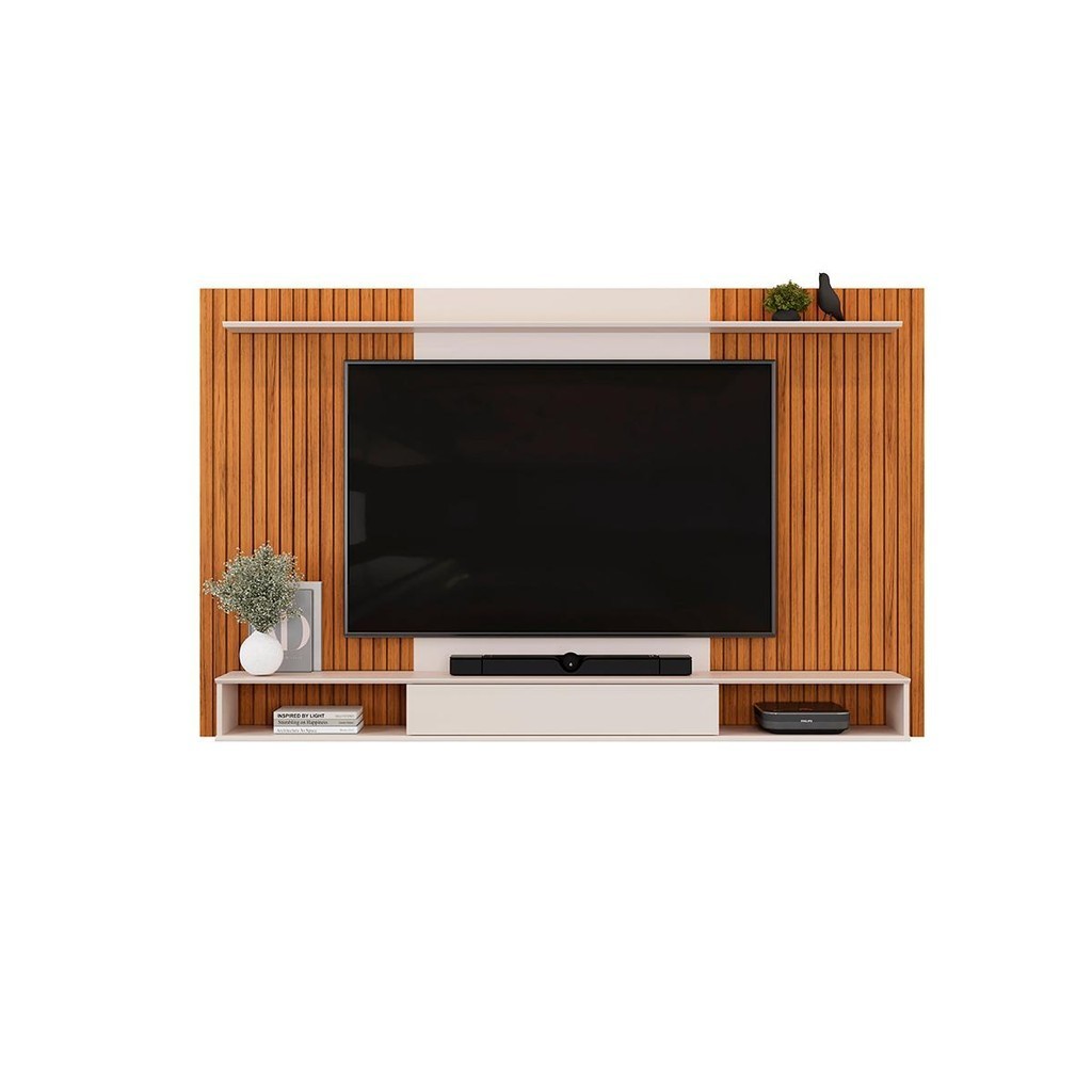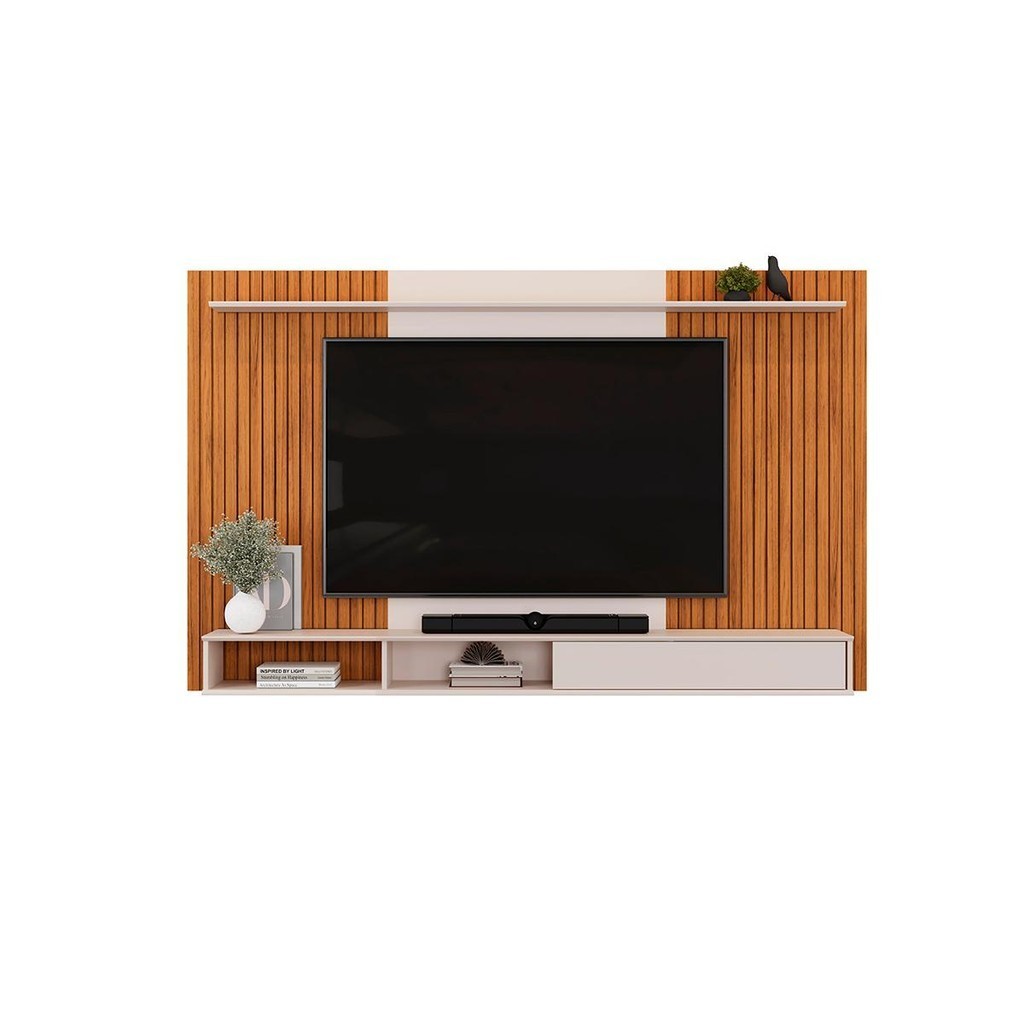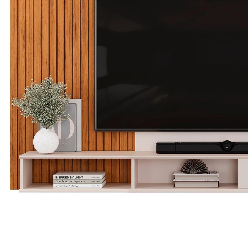 Painel para TV até 70 Polegadas 1 Prateleira DJ Móveis Leo Freijó Off White
