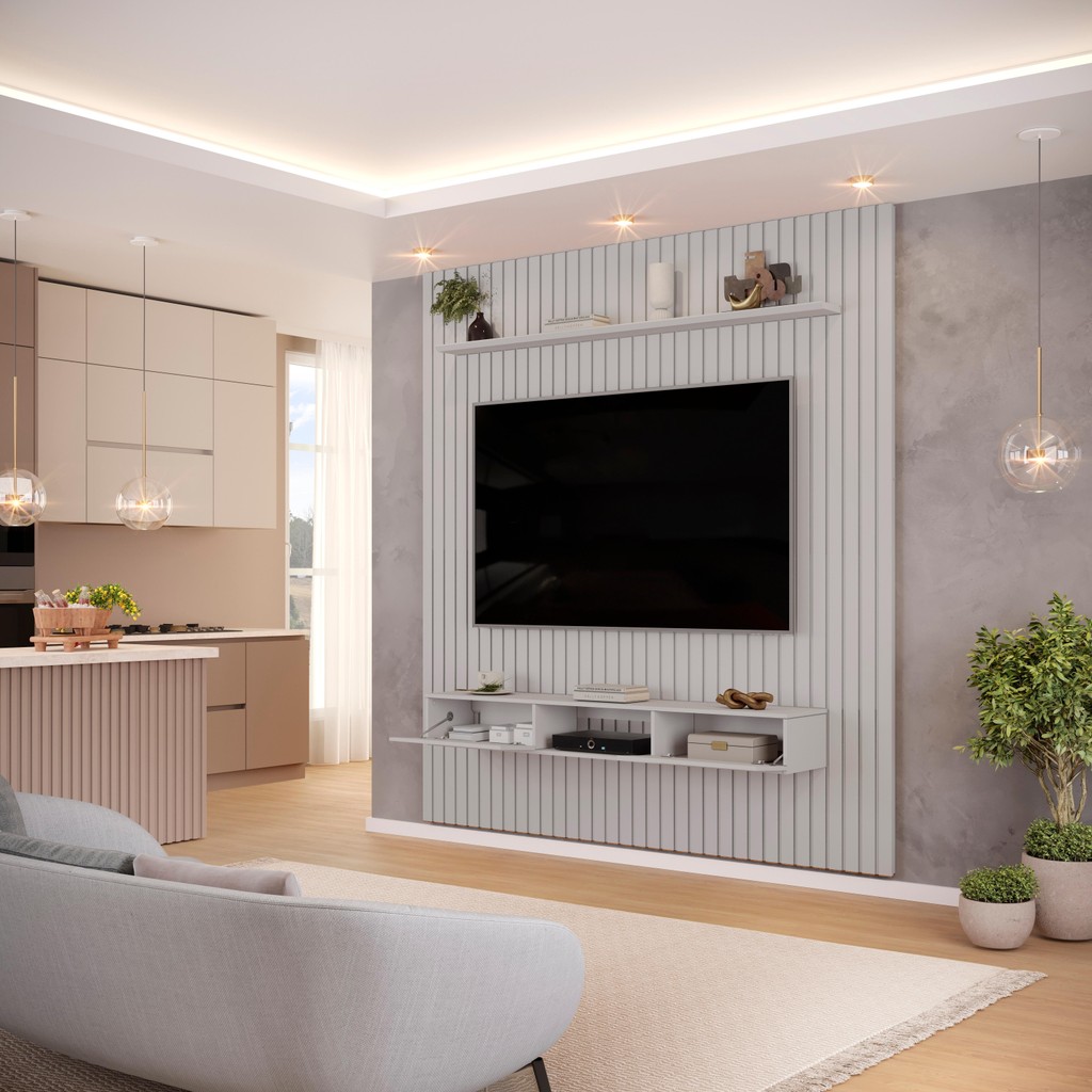 Painel com Bancada para TV até 75 Polegadas Ripado DJ Móveis Trento 223 Bali