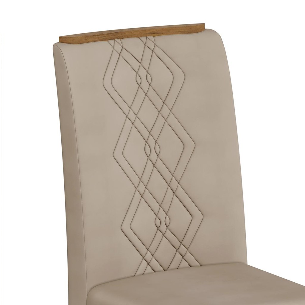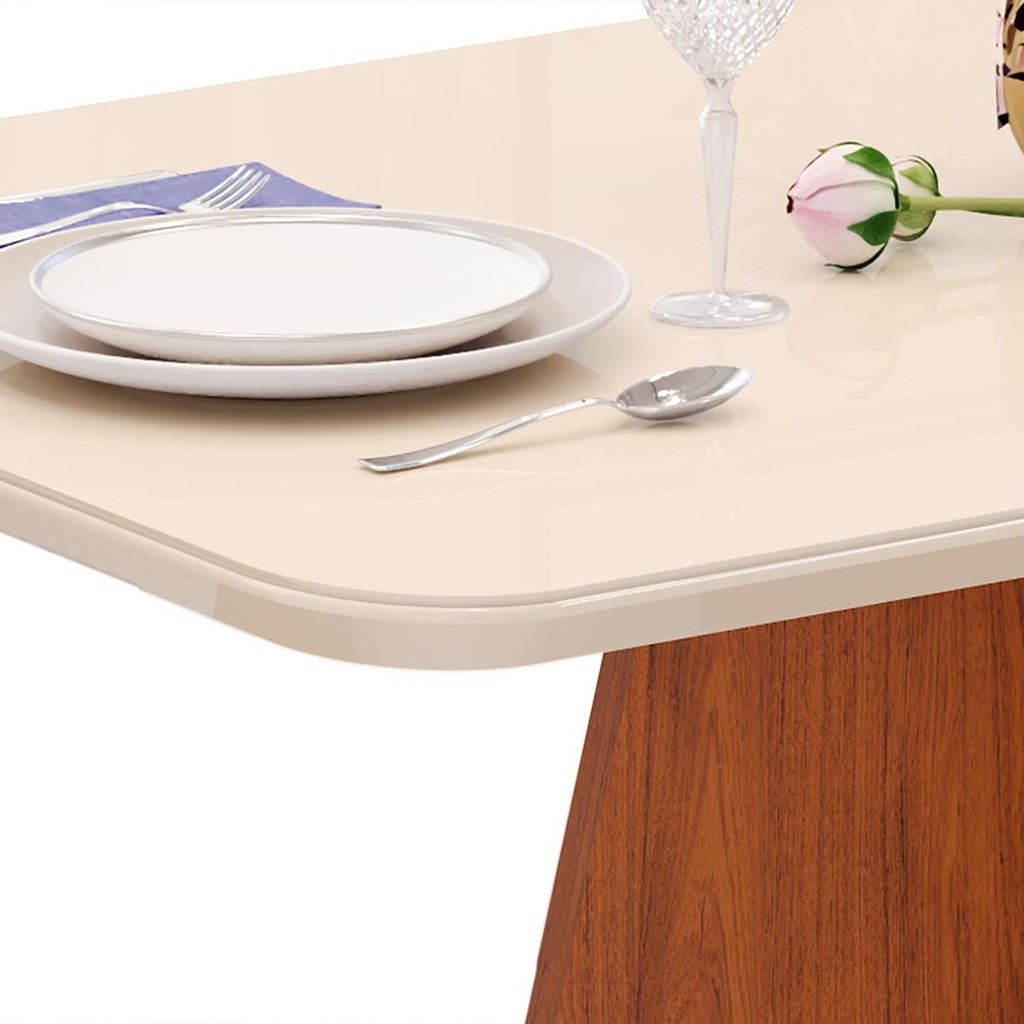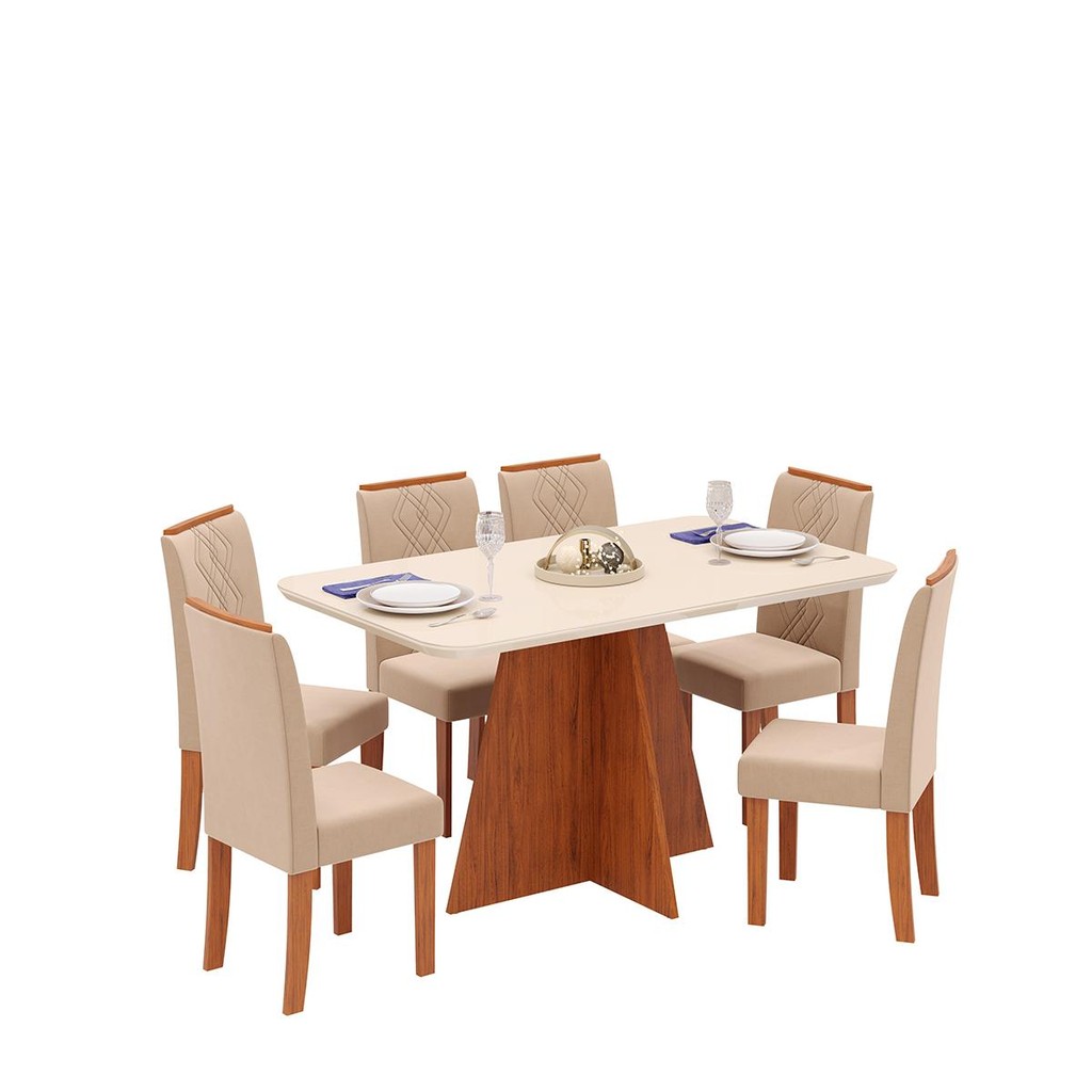 Conjunto Sala de Jantar 6 Cadeiras Tampo de Vidro DJ Móveis Siena Freijó Ayla Veludo Creme