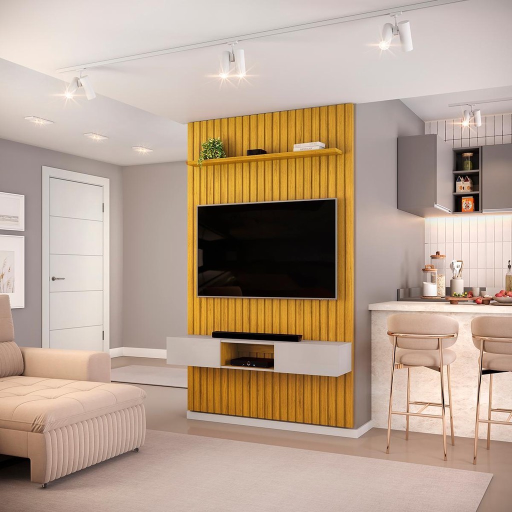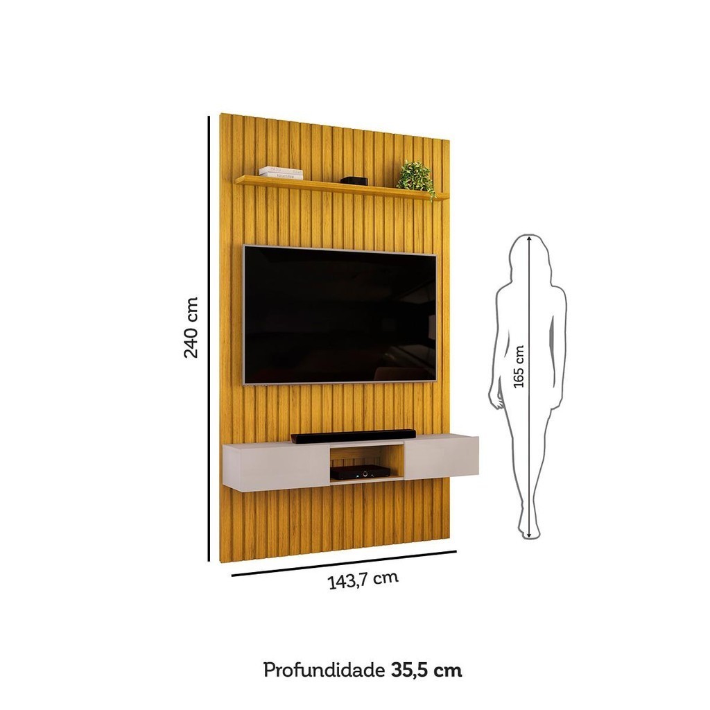 Painel com Bancada para TV até 60 Polegadas Ripado DJ Móveis Trento 143 Cedro Bali
