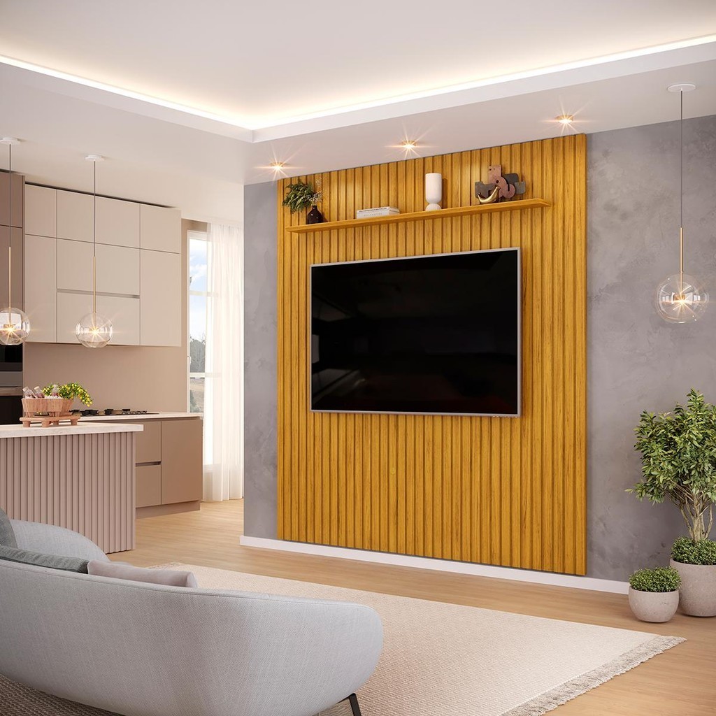 Painel para TV até 75 Polegadas Ripado DJ Móveis Trento 223 Cedro