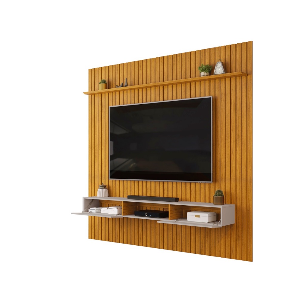 Painel com Bancada para TV até 75 Polegadas Ripado DJ Móveis Trento 250 Cedro Bali