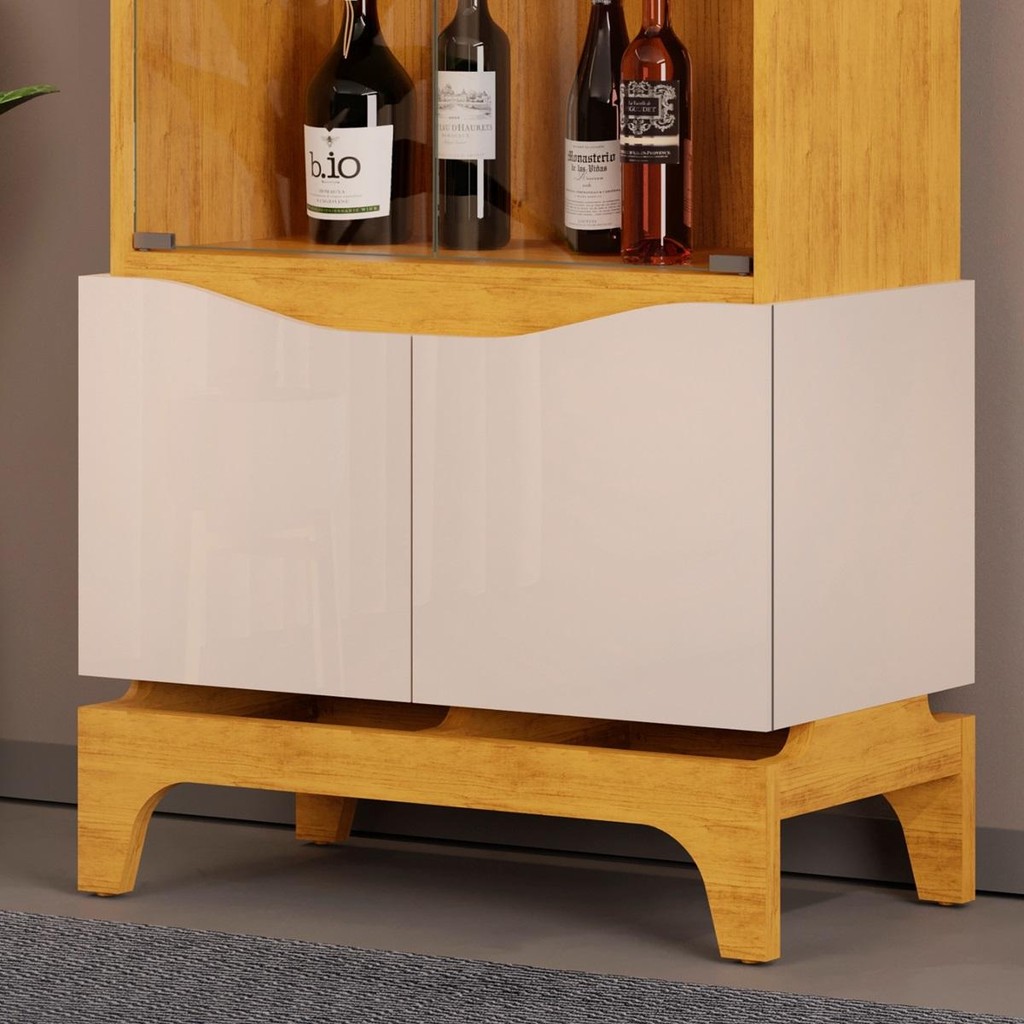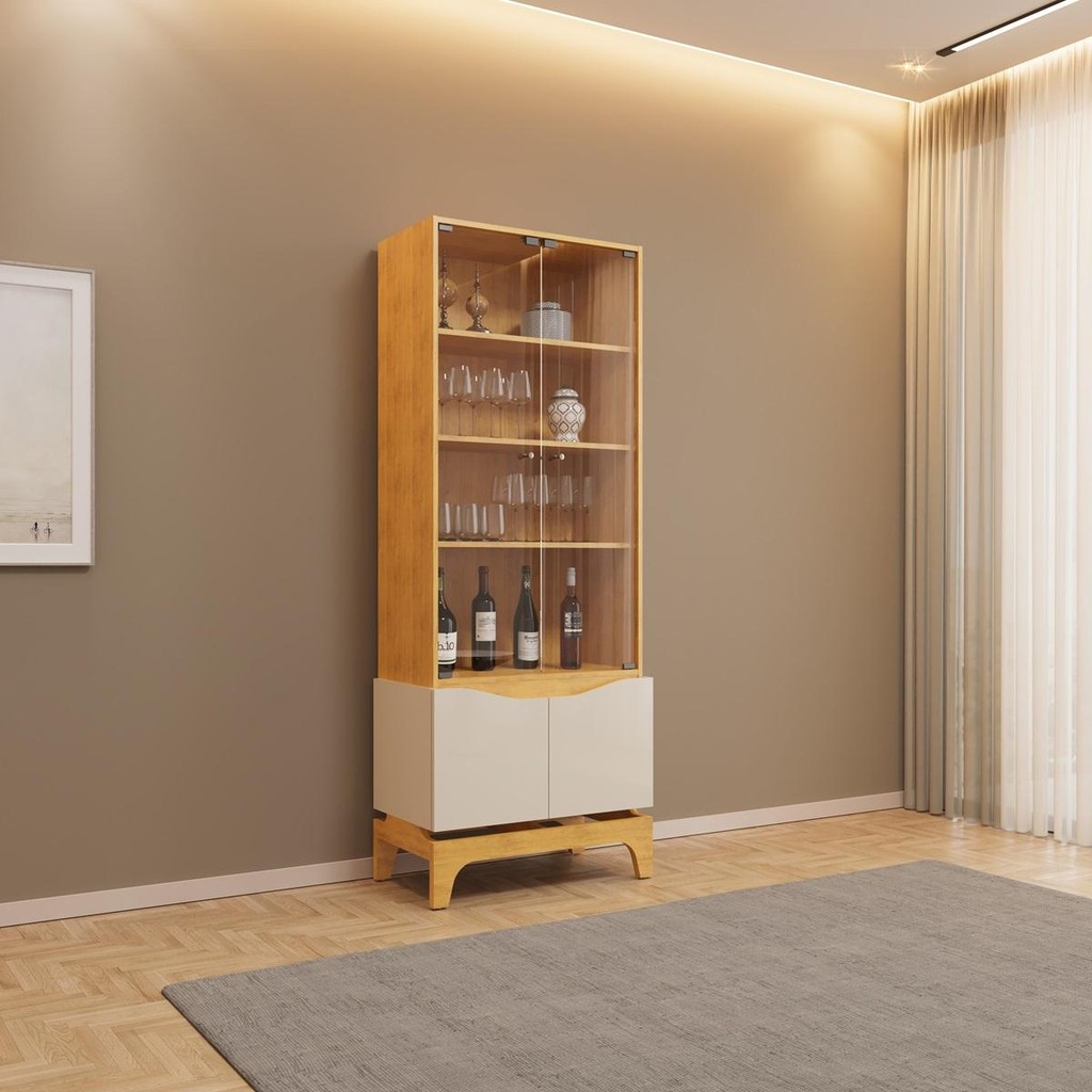 Cristaleira com 4 Portas e 3 Prateleiras DJ Móveis Joile Cedro Off White