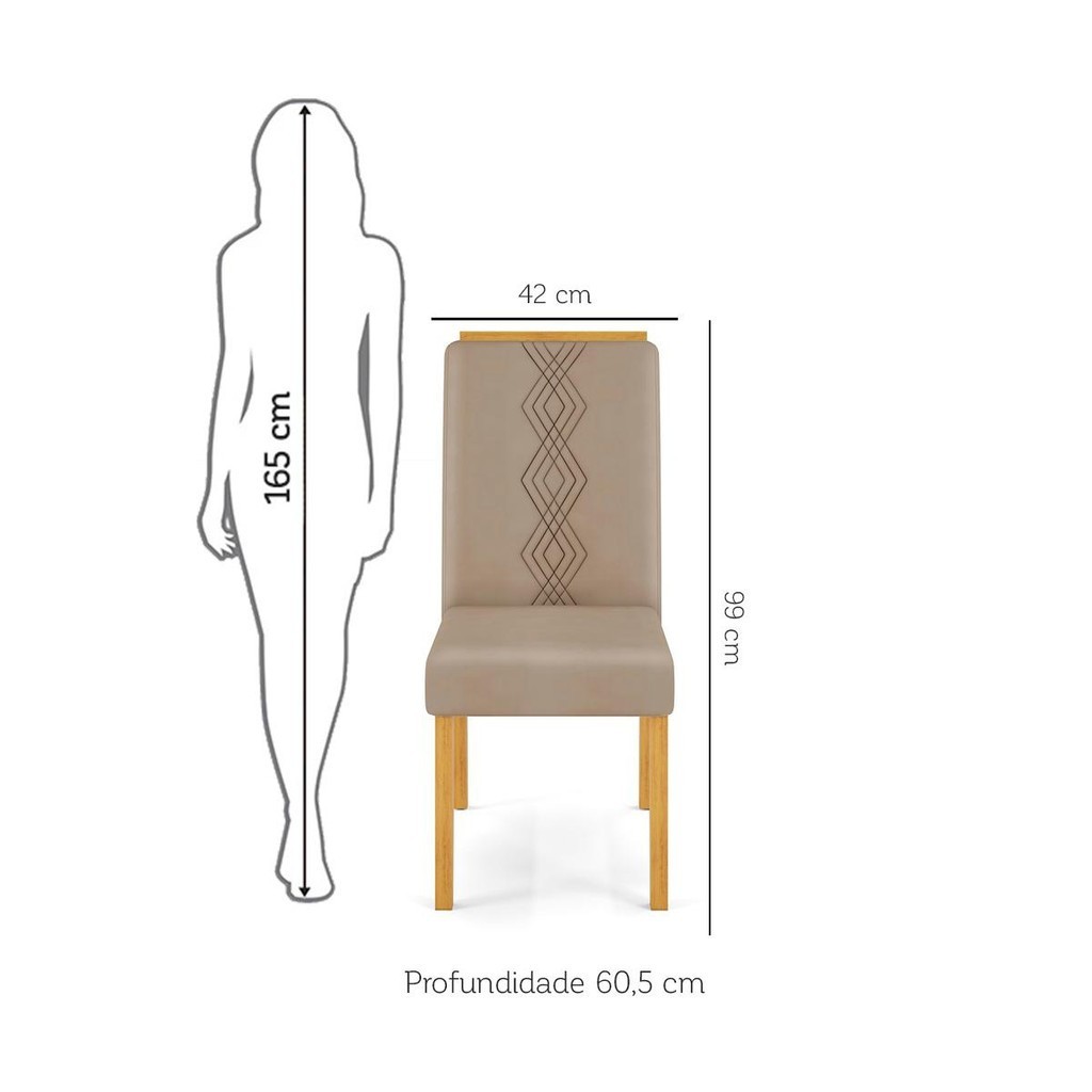 Conjunto Sala de Jantar 6 Cadeiras Tampo Curvo DJ Móveis Kiara Cedro Yasmin Veludo Kraft