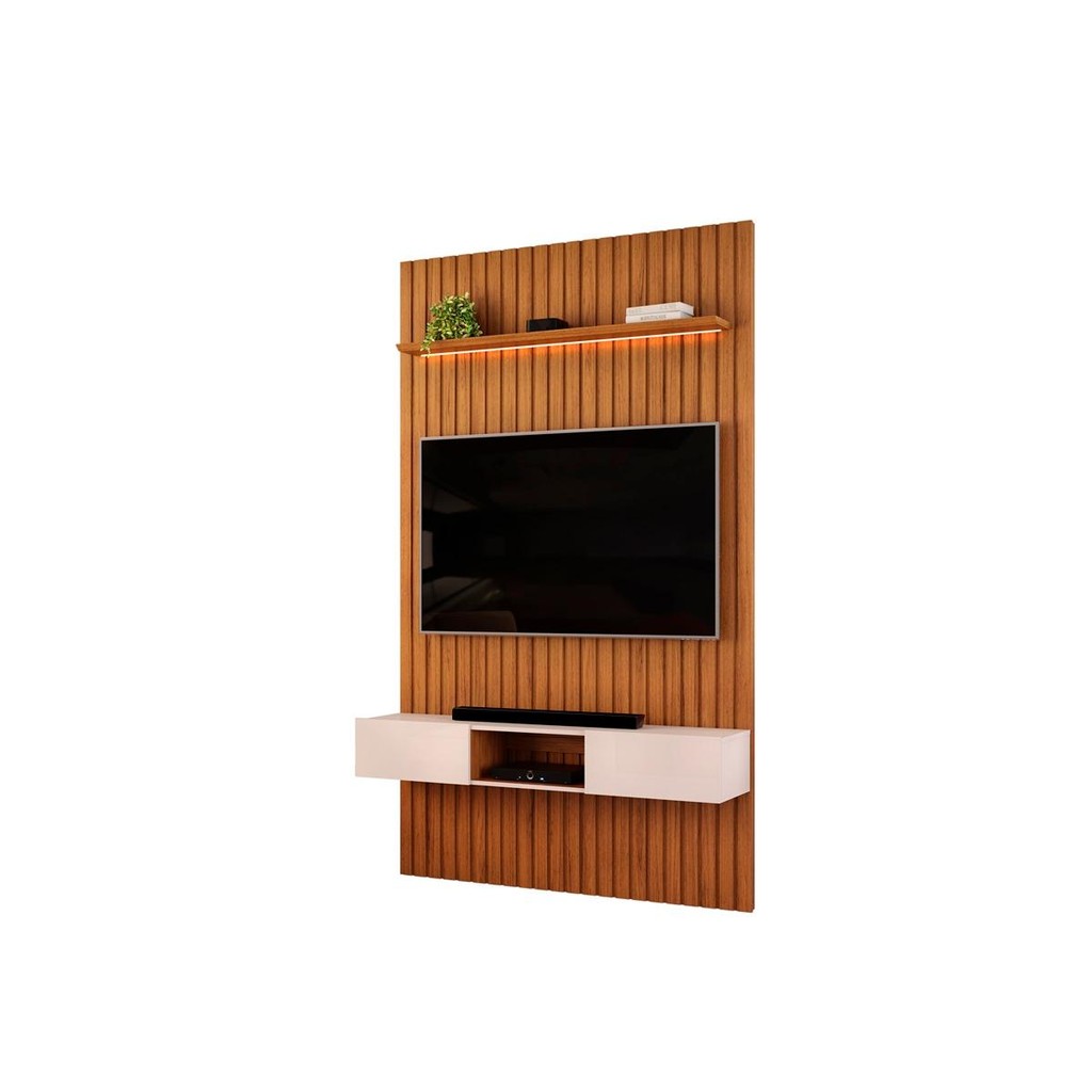 Painel com Bancada para TV até 60 Polegadas Ripado com LED DJ Móveis Trento 143 Freijó Off White