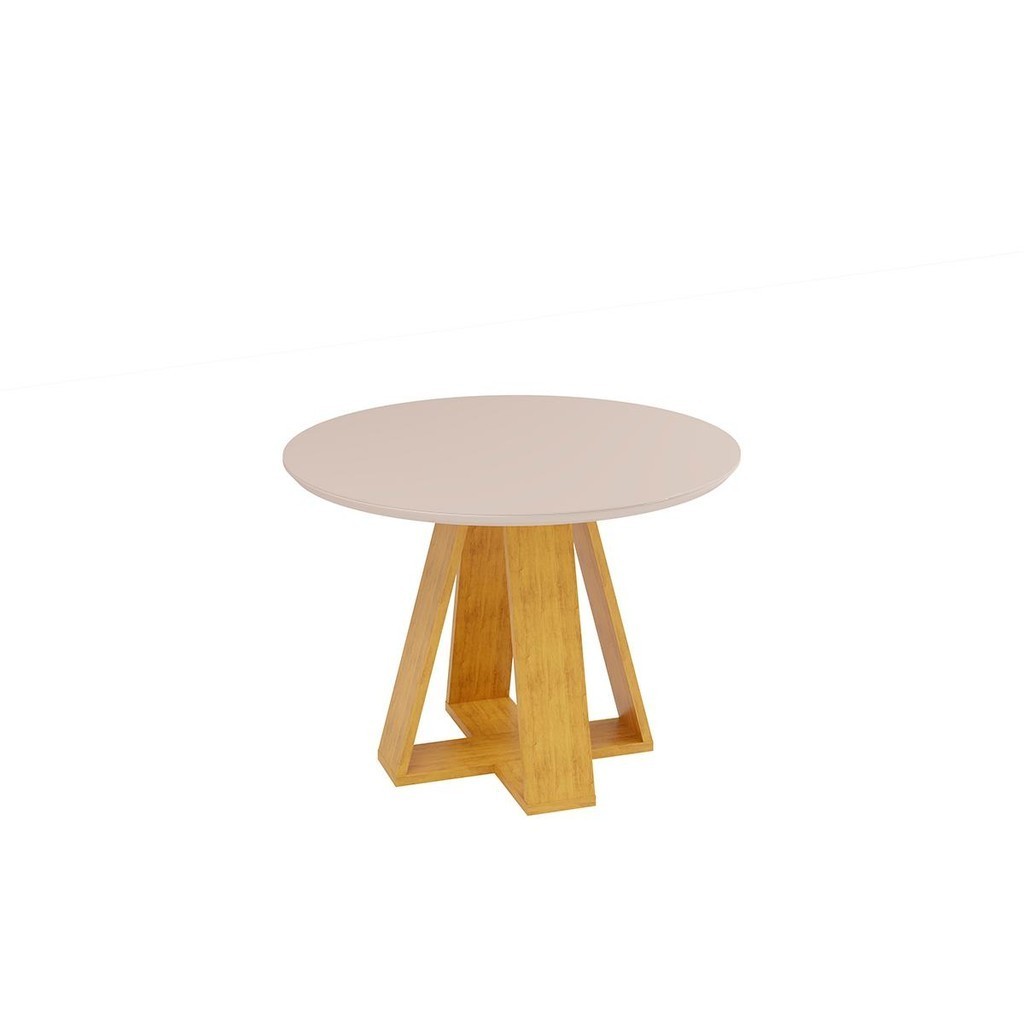 Mesa de Jantar Tampo Redondo Chanfrado Curvo DJ Móveis Kiara Cedro Off White