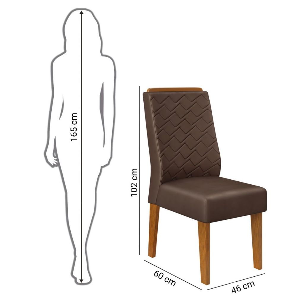 Conjunto de Sala de Jantar 4 Cadeiras Tampo SEM VIDRO 170x90 DJ Móveis Kiara Freijó Lidia Moca