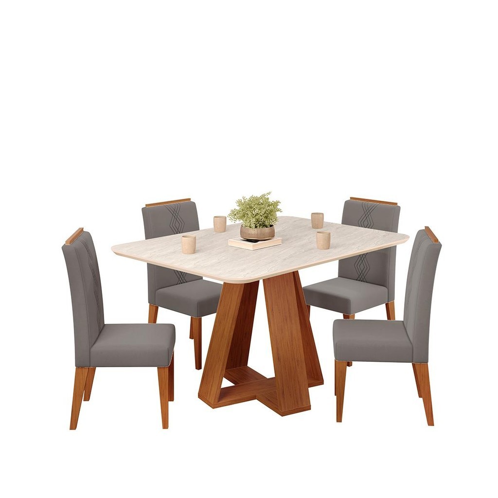 Conjunto Sala Jantar 4 Cadeiras Sem Vidro DJ Móveis Kiara Freijó Quartzo Yasmin Veludo Lunar