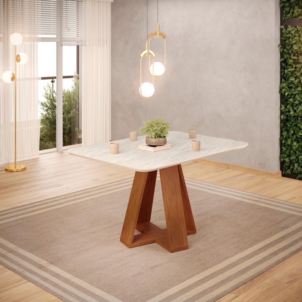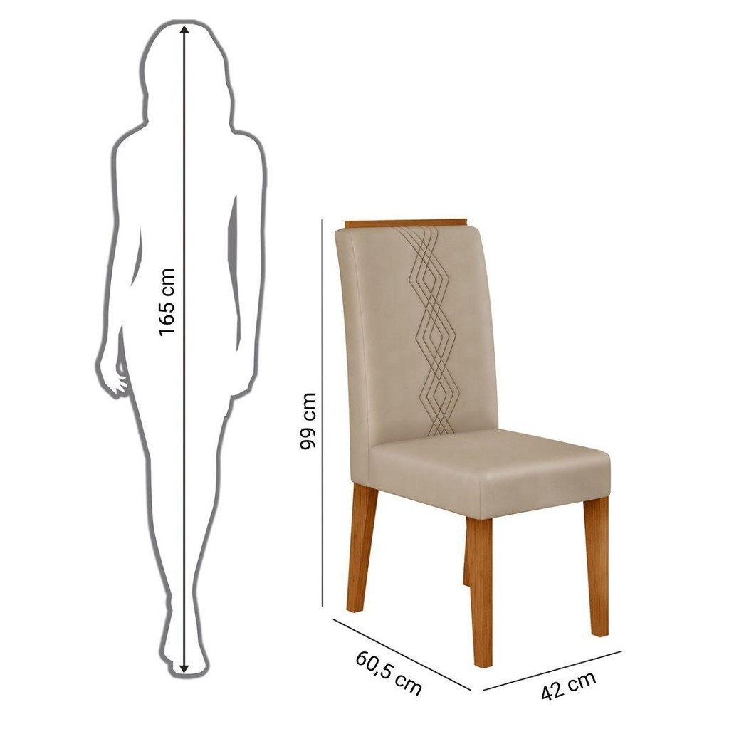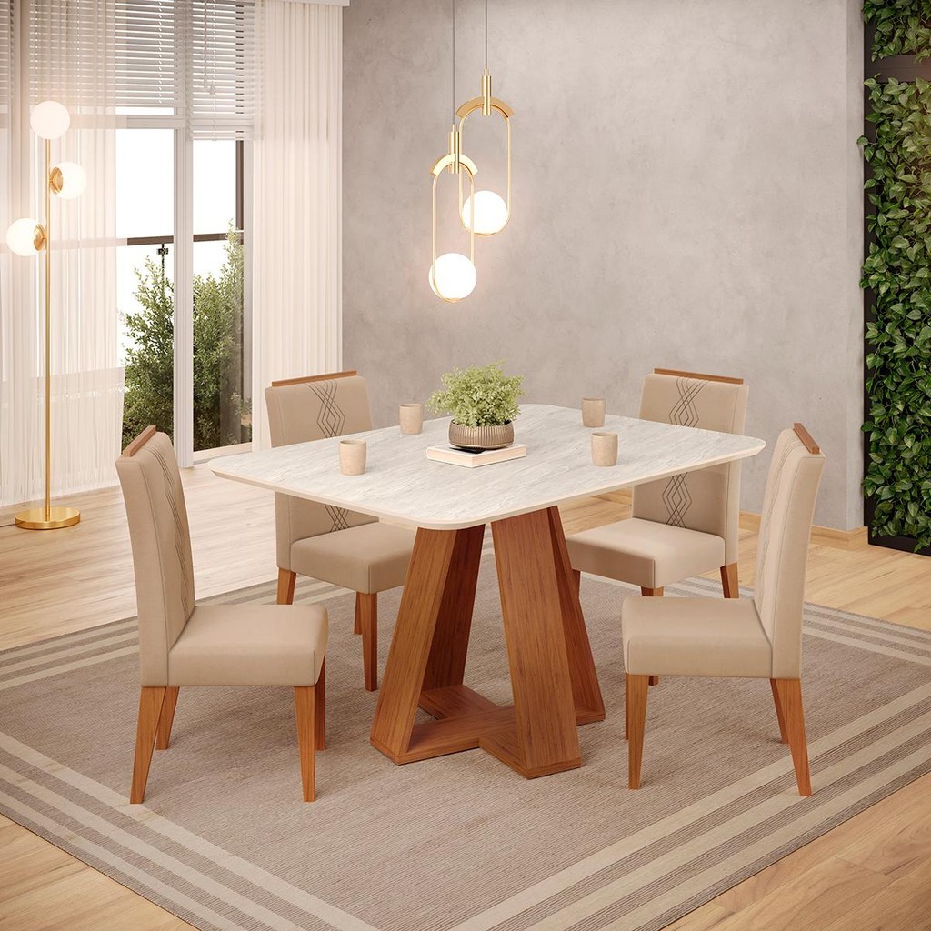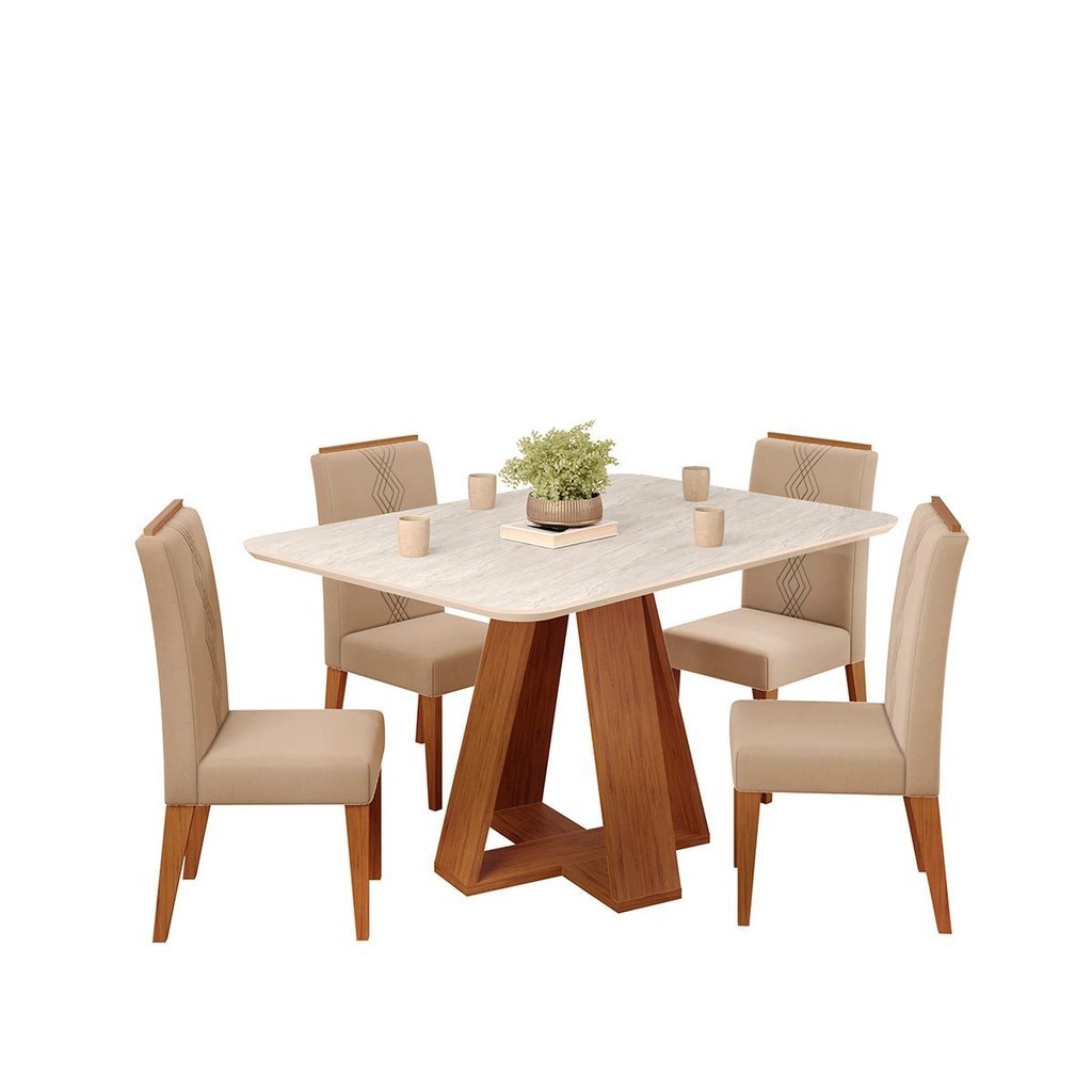 Conjunto Sala Jantar 4 Cadeiras Sem Vidro DJ Móveis Kiara Freijó Quartzo Yasmin Veludo Kraft