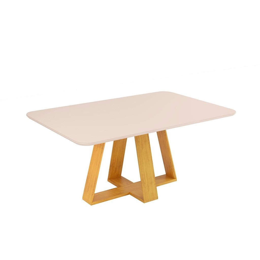 Mesa de Jantar Retangular Tampo Chanfrado Curvo 160x90 DJ Móveis Kiara Cedro Off White
