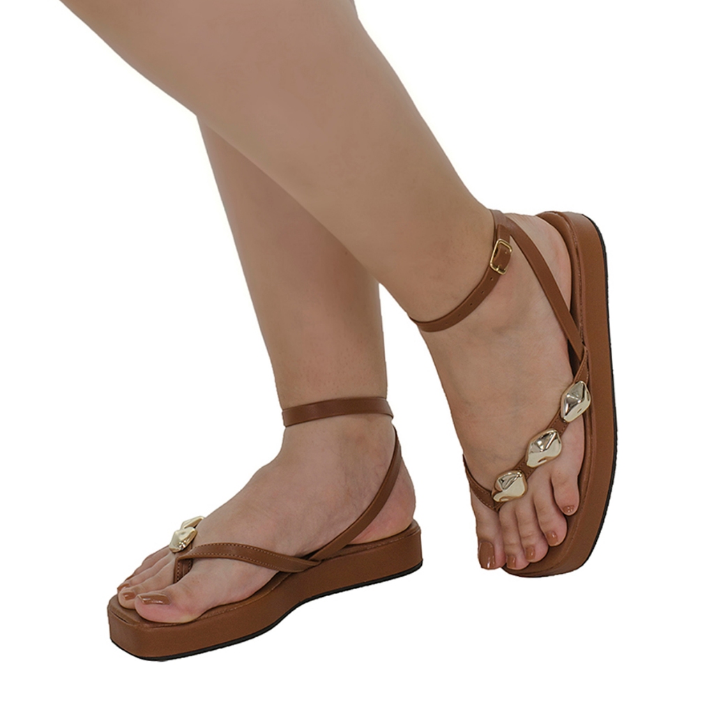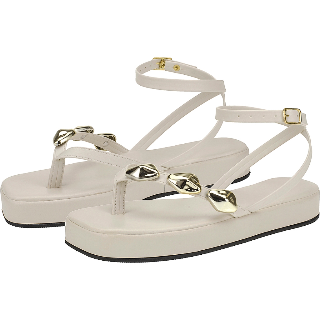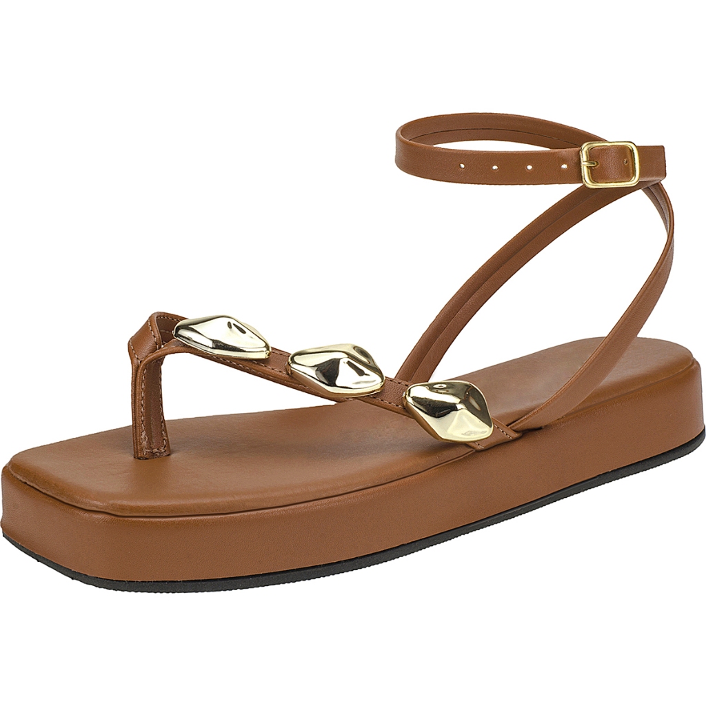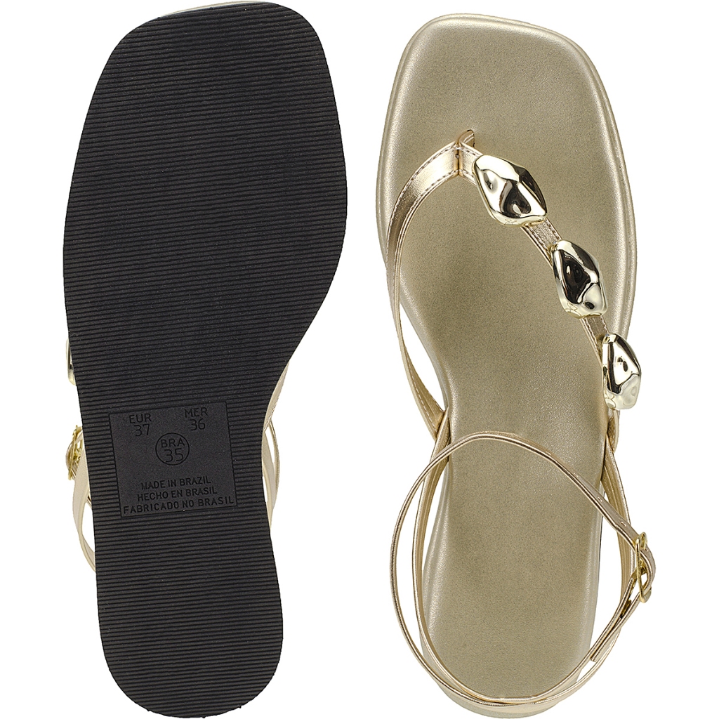 Sandália Rasteira Feminina com Pedrarias Douradas e Plataforma