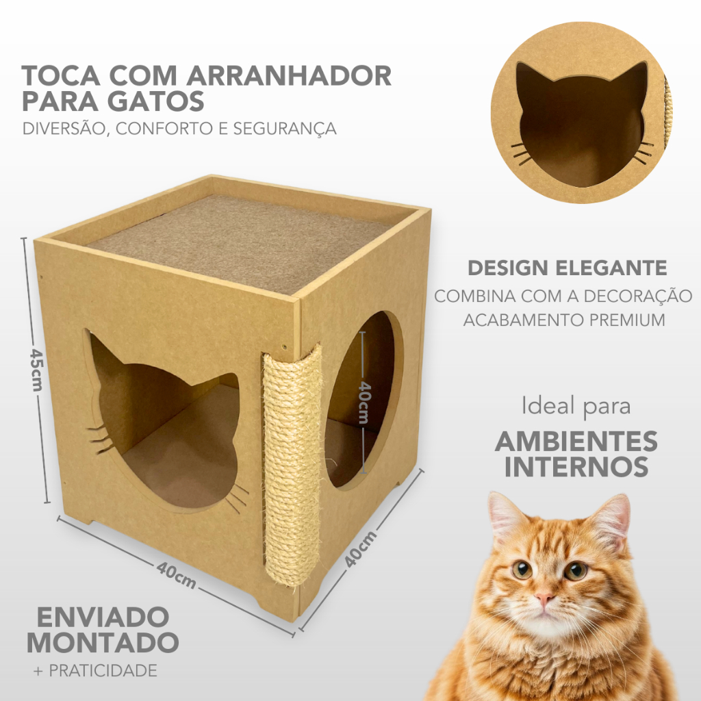 Arranhador Para Gatos REFORÇADO MONTADO PREMIUM Casa de Gato Casinha de Gato Toca Para Gato coisas