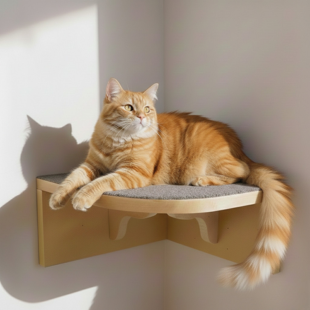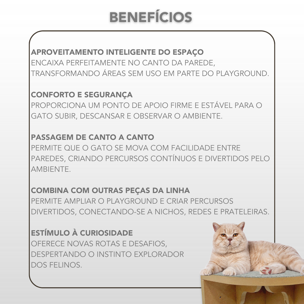 Prateleira Para Gatos de Canto Interno CRU MDF 15mm REFORÇADO c/ Carpete Playground Gatificação