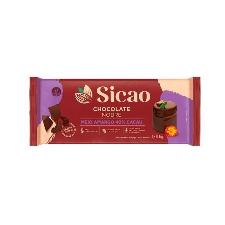 Chocolate Sicao Nobre Meio Amargo- Barra 1,01KG