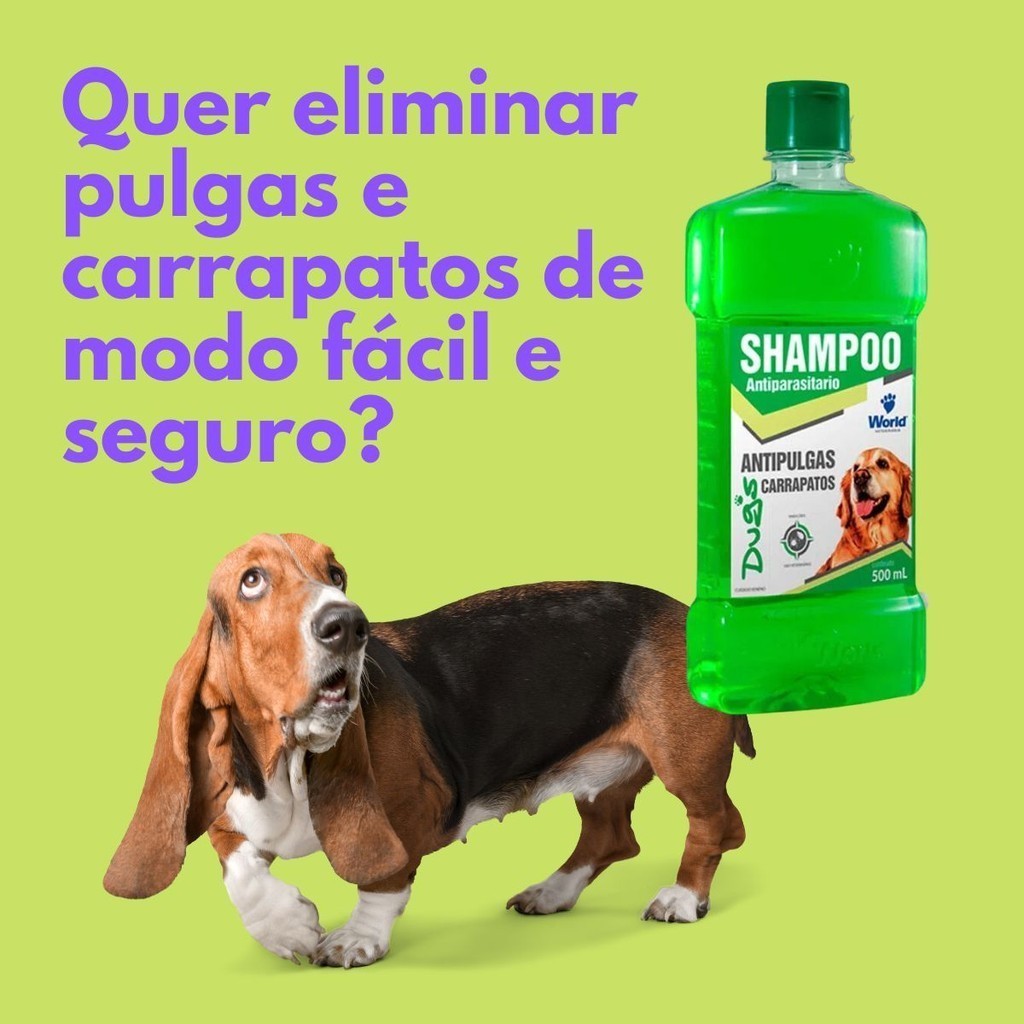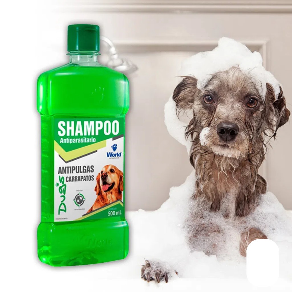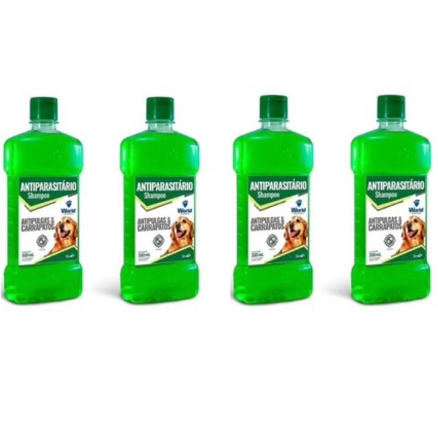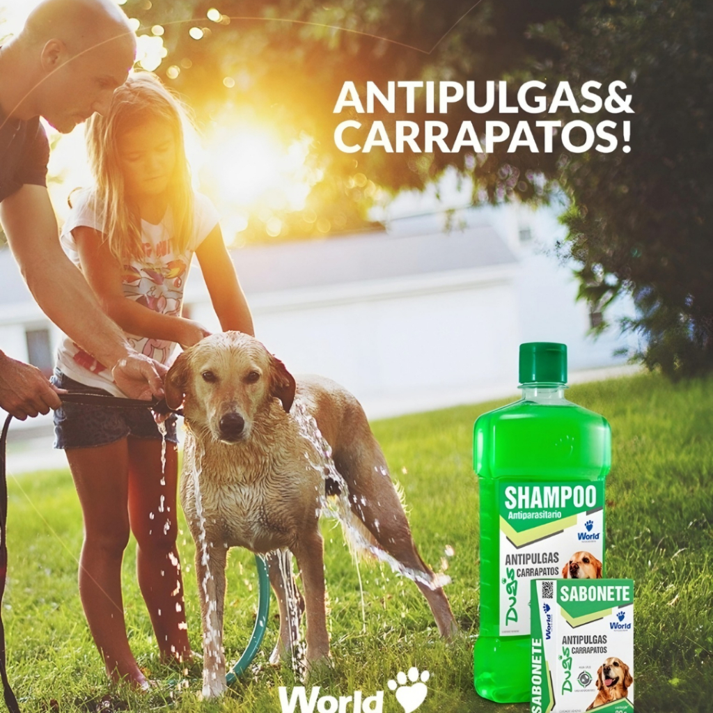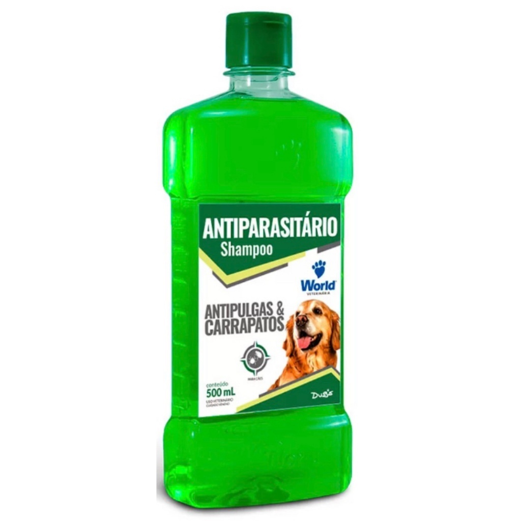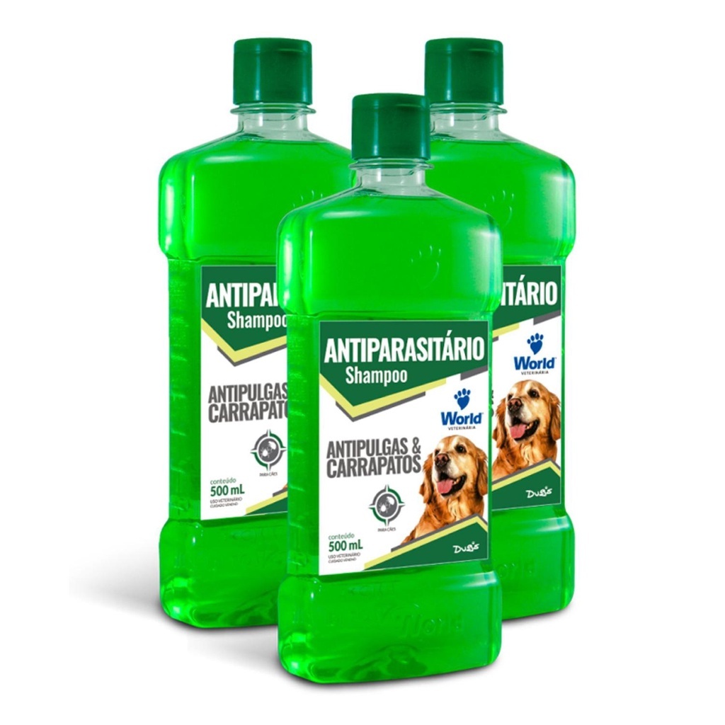 Shampoo De Clorexidina 500Ml e Shampoo Antipulgas e Carrapatos Para Cães 500mL World Veterinaria