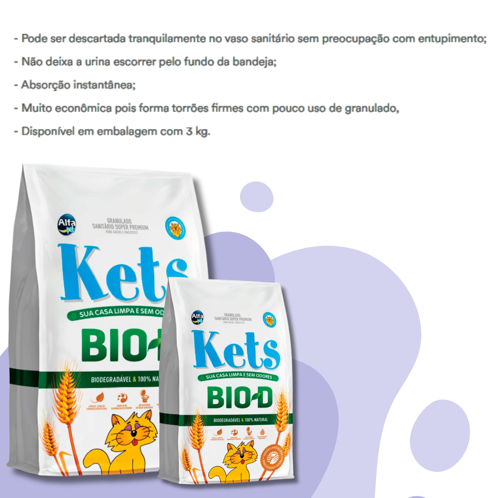 Areia para Gato Higiênica Granulado Natural Biodegradável Para Gatos Kets Bio-d 3kg Alfa Pet