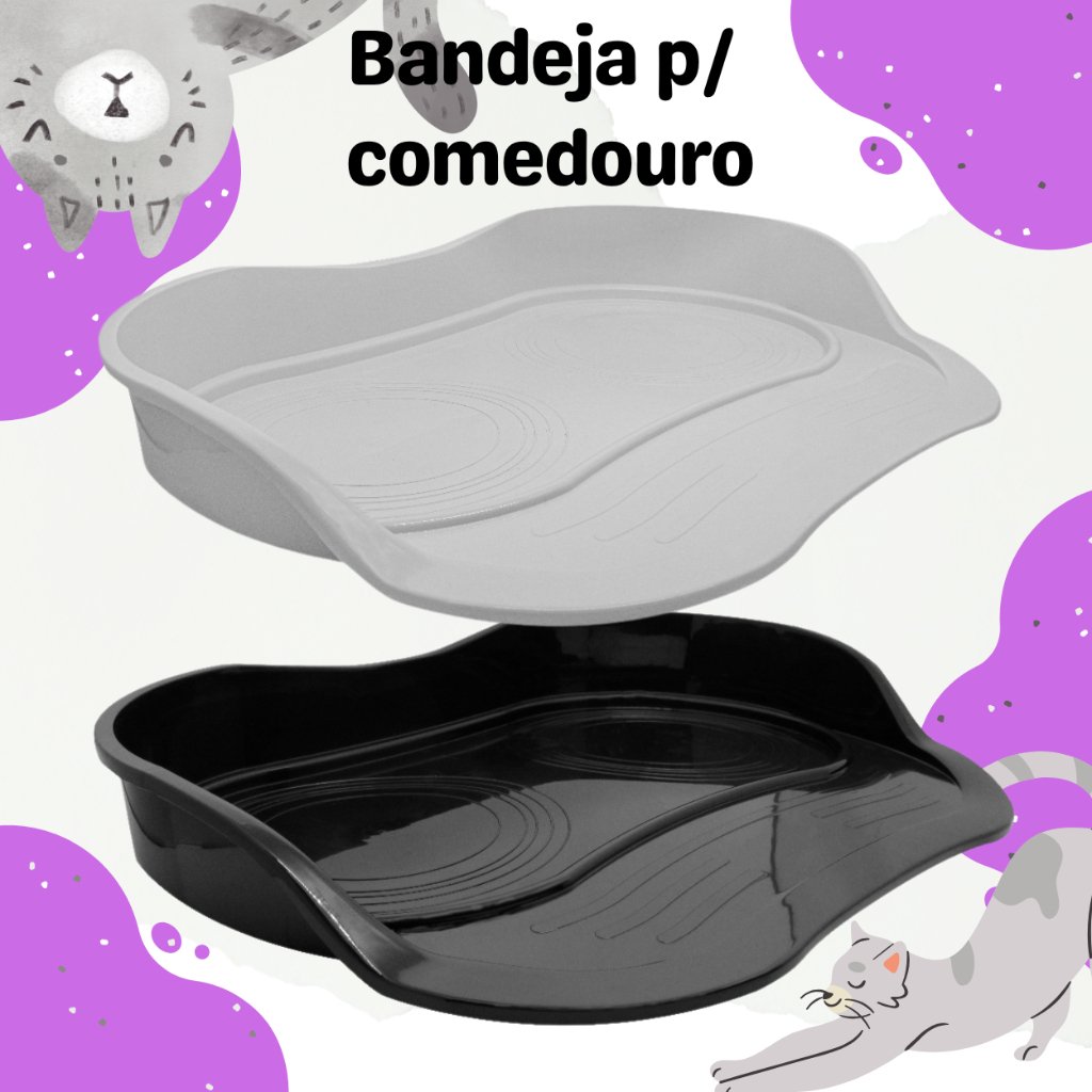 Comedouro, Bebedouro e Bandeja Para Cães e Gatos - Bandeja e 2 Vasilhas Pet Para Água e Comida