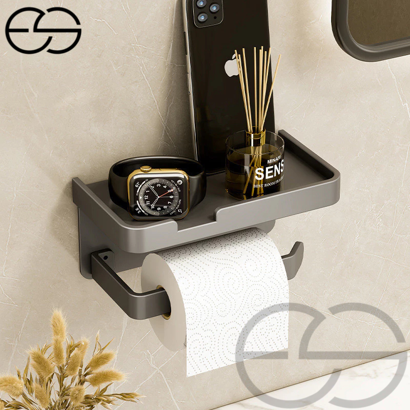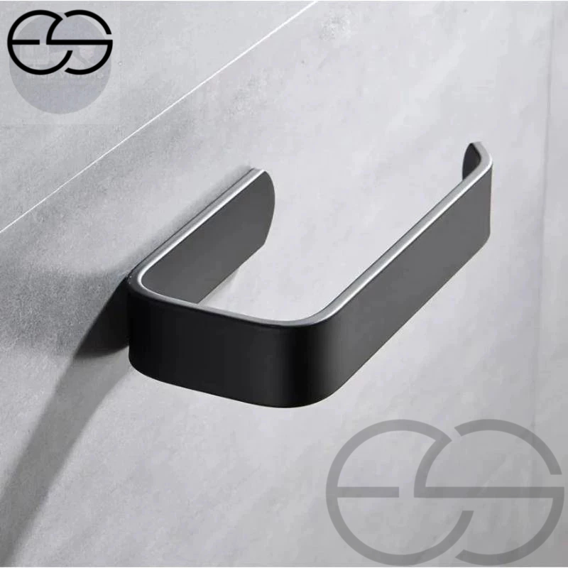 Metal Suporte Porta Papel Higienico Preto e Suporte para Celular Com Adesivo Fixo na Parede Sem Furos ES