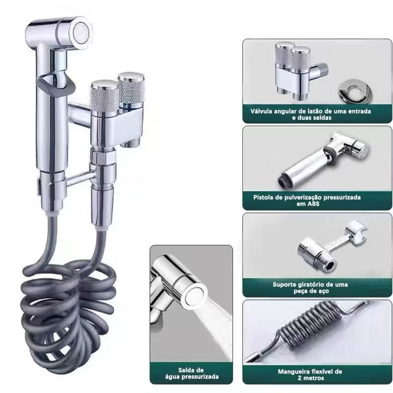 KIT Banheiro Ducha Higiênica Duas Saídas De 1/2 Mm Com Registro Conjunto De Pulverizador ES