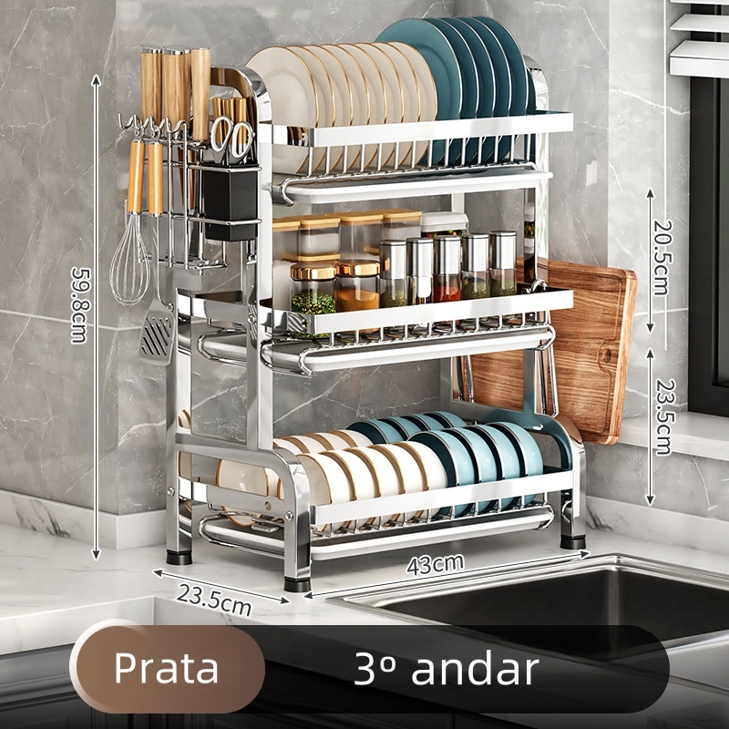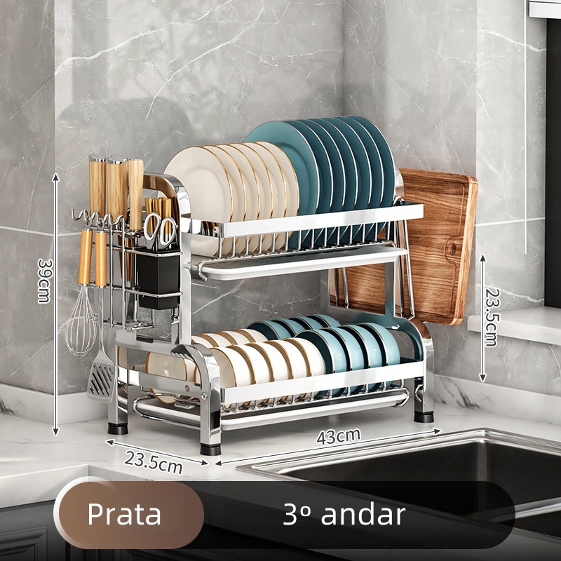 Escorredor Organizador de Louças 2 andar 3 andar Preto Aço Inoxidável Rack ES