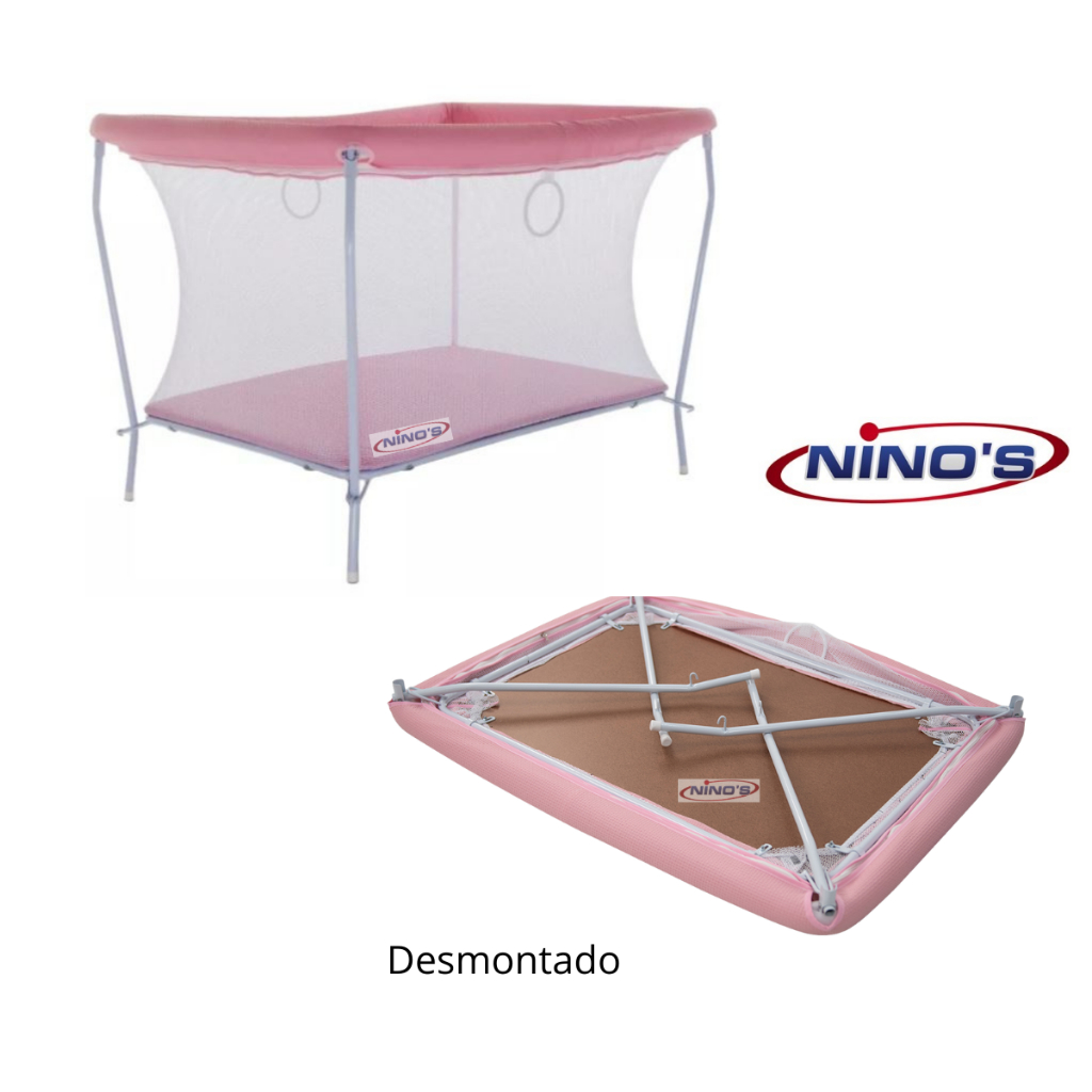 BERÇO CERCADO CHIQUEIRINHO ROSA COM COLCHÃO E MOSQUITEIRO NINOS