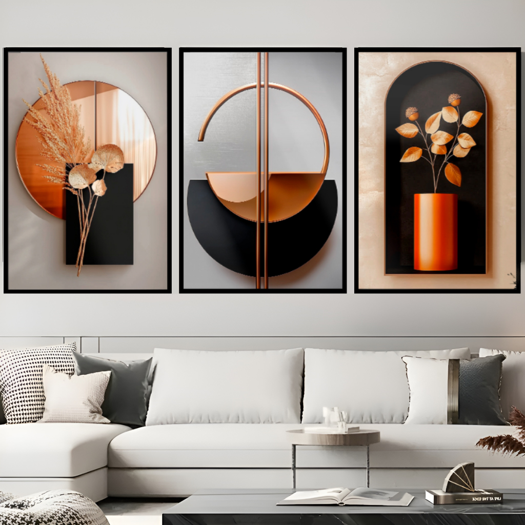 Quadro Grande Sala Decorativo Geométrico Abstrato Trio Nordic Hal 120x60