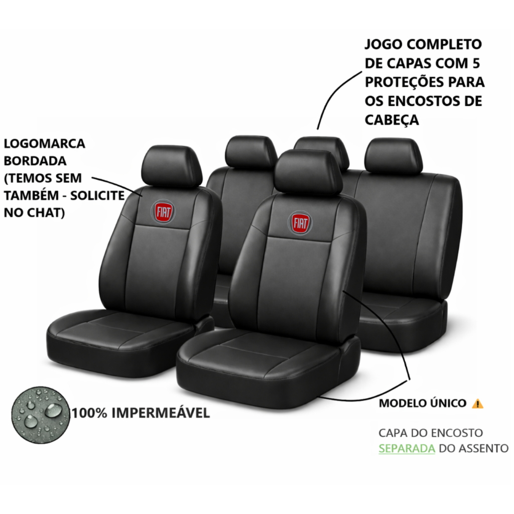 Jogo capa de banco carro de couro grosso Fiat Palio Uno Siena Argo Cronos Idea Strada Punto Linea