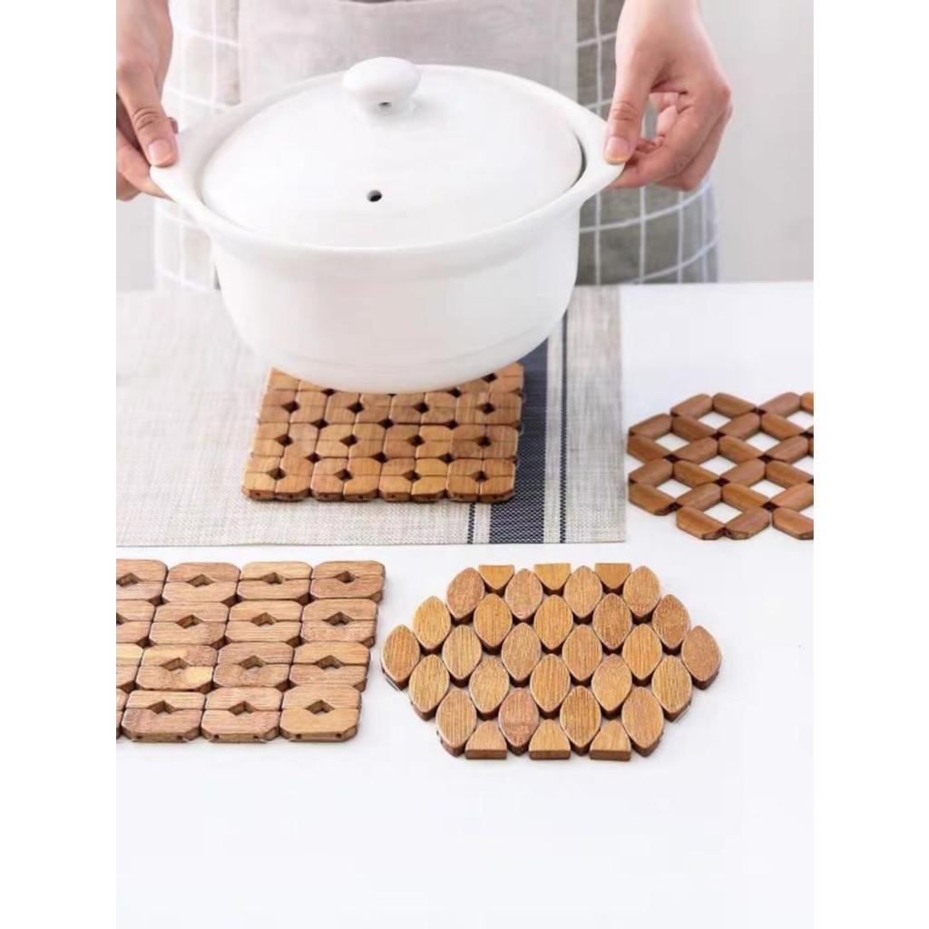 Descanso de Panela, KIT de 3 / 6 peças Bambu, Sextavado, 16x16cm