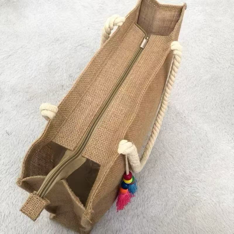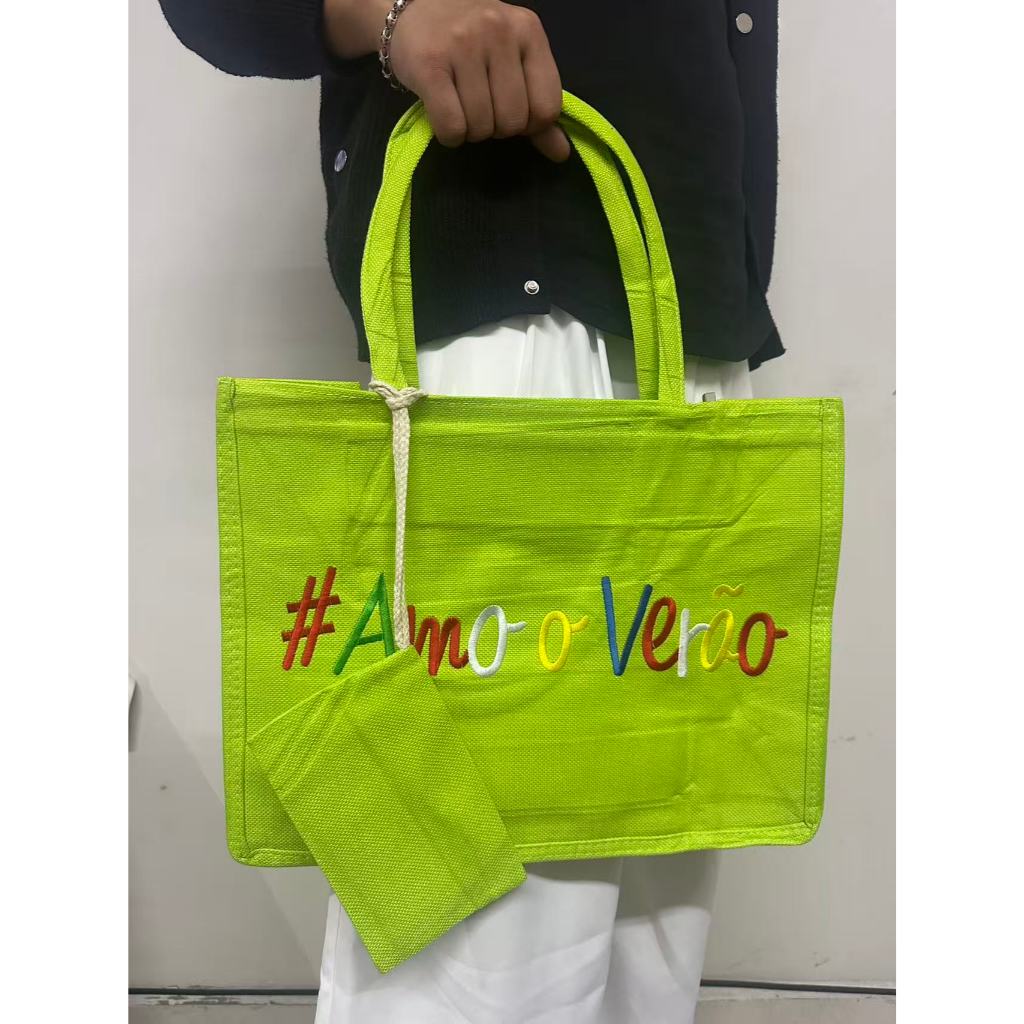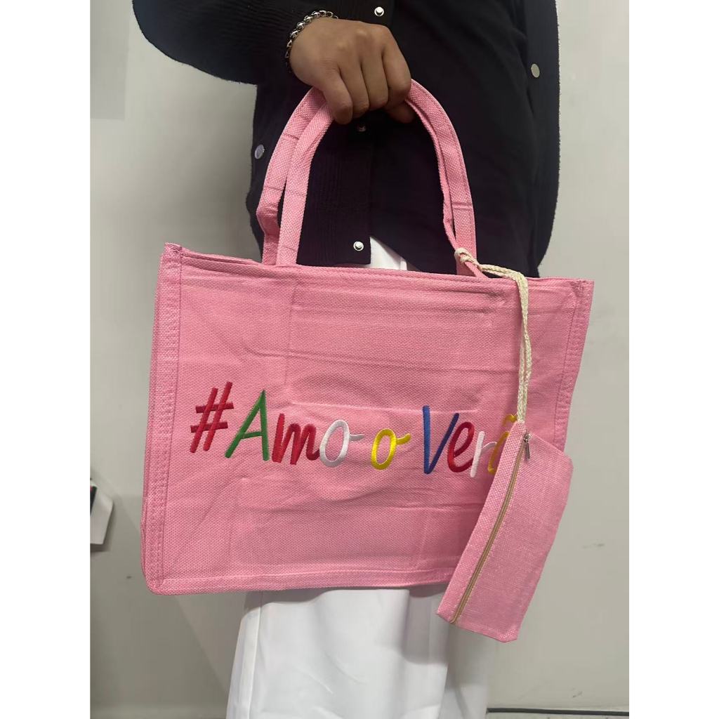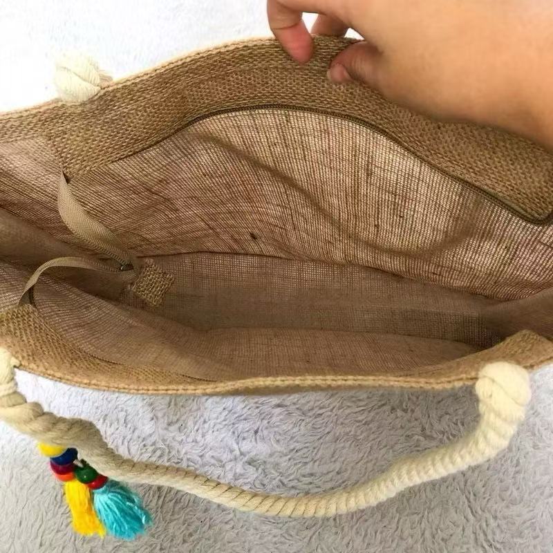 Bolsa Praia Com Zíper Grande Pallha Sintética EcoBag Juta Sacola Moda Verão Feminina Ombro