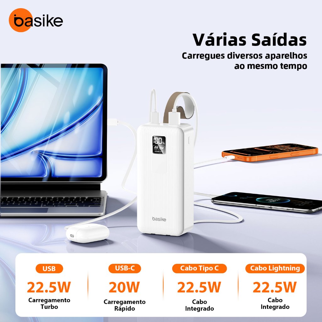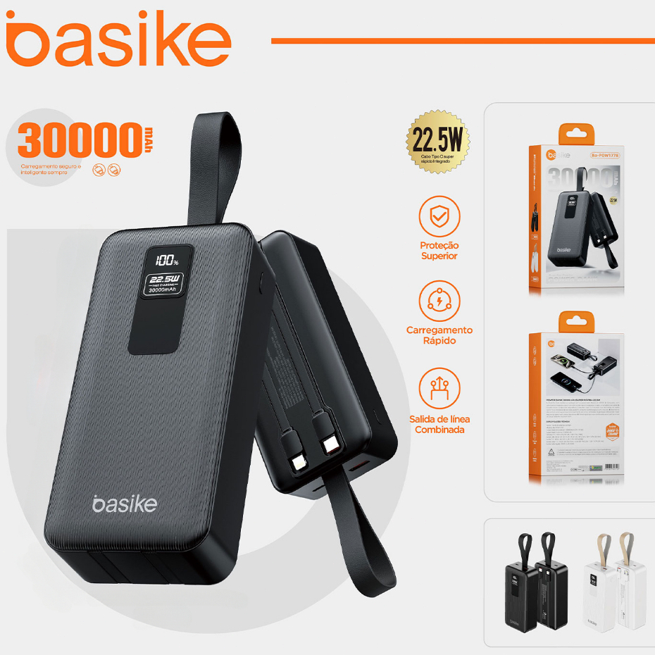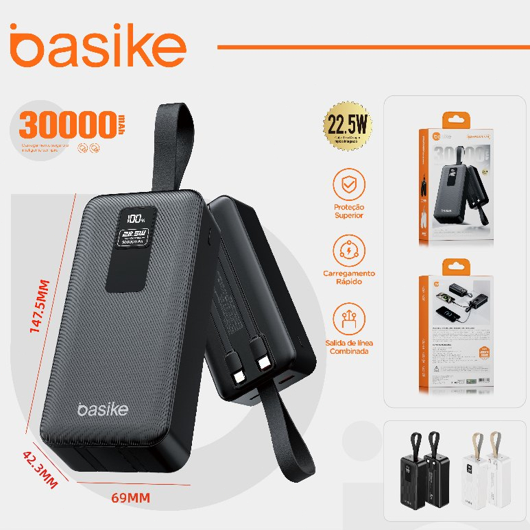Basike Carregador portátil Power Bank 30000mah PD 22.5W Carregamento rápido 20000mah 10000mah