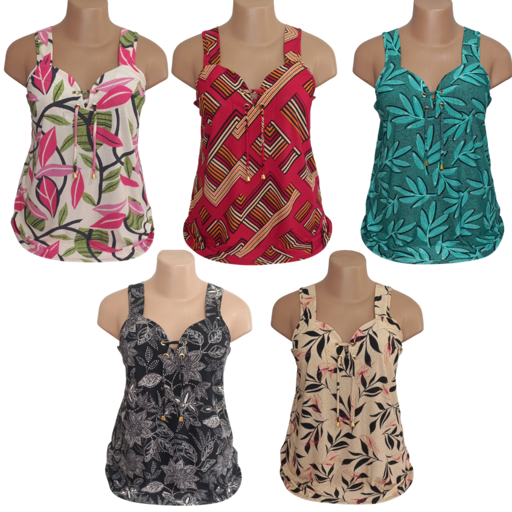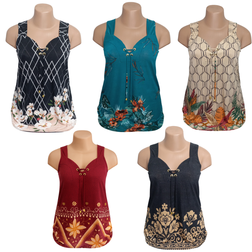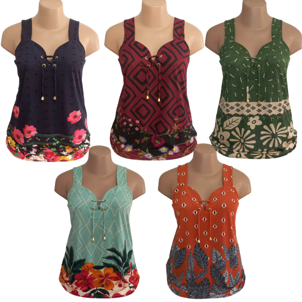 Kit 3 Regata Malha Fria Feminina Estampadas Soltinhas e confortáveis