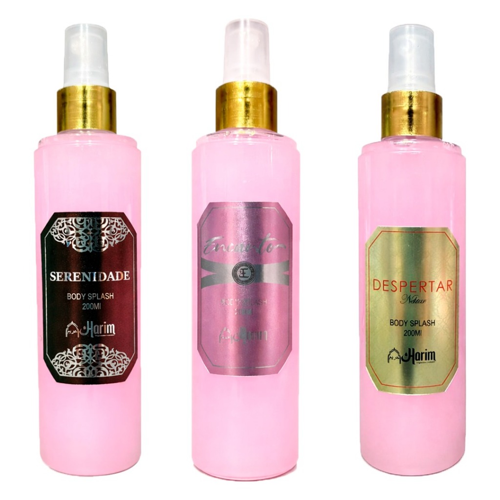 Kit 3 Perfume Árabe Body Splash Feminino 200ml Harim Alta Fixação e Projeção Dia e Noite Pós Banho