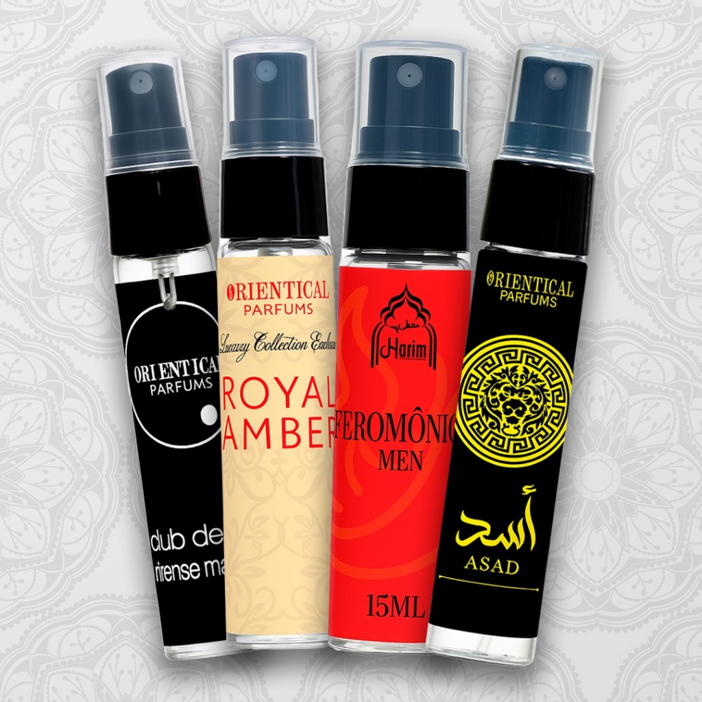 Kit 4 Perfumes Árabes 15ml Masculinos Asad Club de Nuit Intense Royal Amber Feromonios