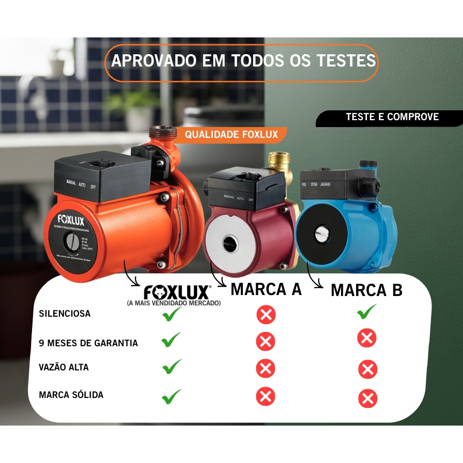 Bomba Pressurizadora Foxlux 127V 120W 9mca com Fluxostato Automático Silenciosa Chuveiro e Torneira