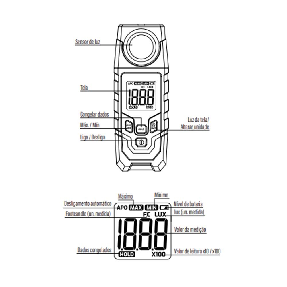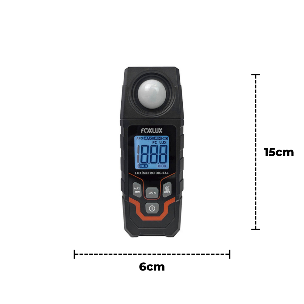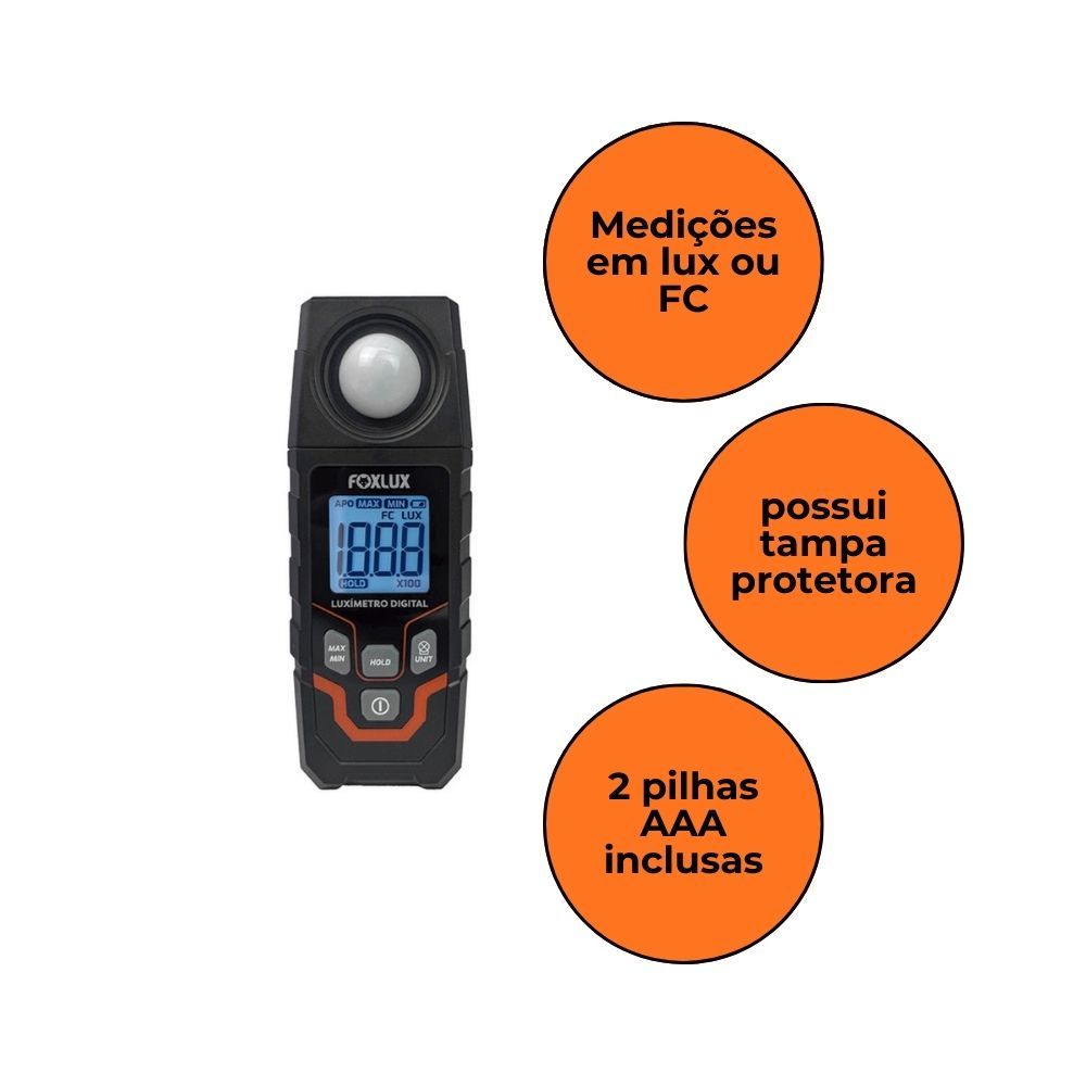 Luxímetro Digital Profissional Foxlux com Display – Medidor de Iluminância Sensor de Alta Precisão